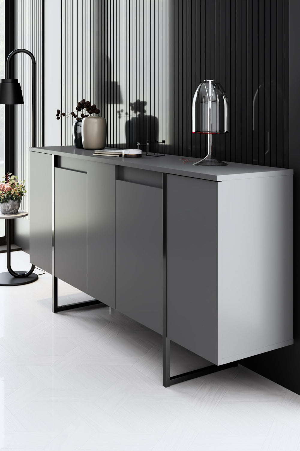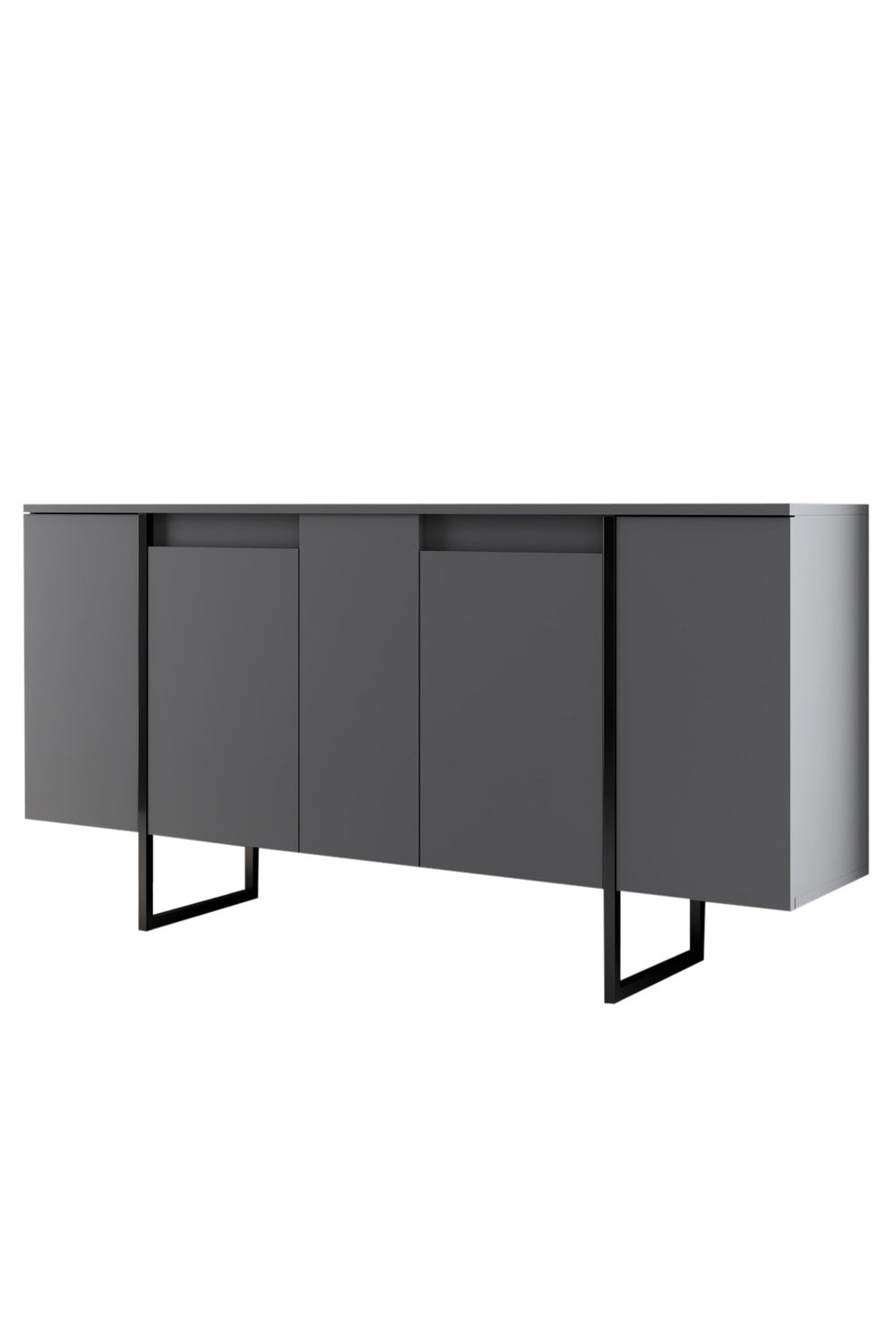 Beschrijving en specificaties van Modern Dressoir Antraciet Luxe 160x80x35 - Zwart Frame