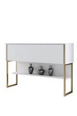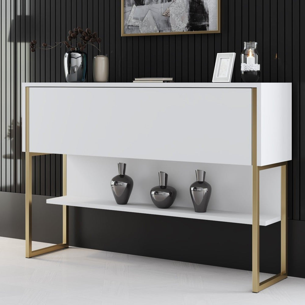 Beschrijving en specificaties van Modern Dressoir Wit Luxe 120x80x30 - Gouden Frame - Eén Vak