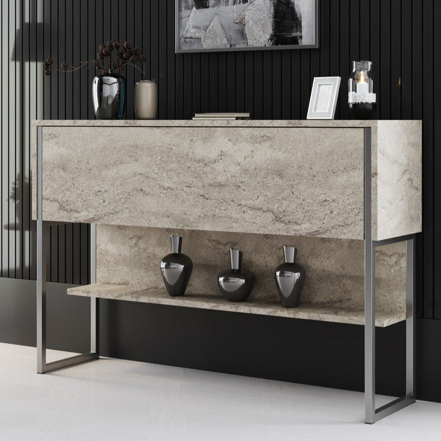 Modern Dressoir Travertijn Luxe 120x80x30 - Zilver Frame - Eén Vak