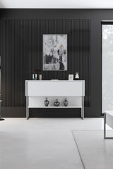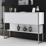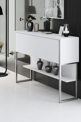 Beschrijving en specificaties van Modern Dressoir Wit Luxe 120x80x30 - Zilver Frame - Eén Vak