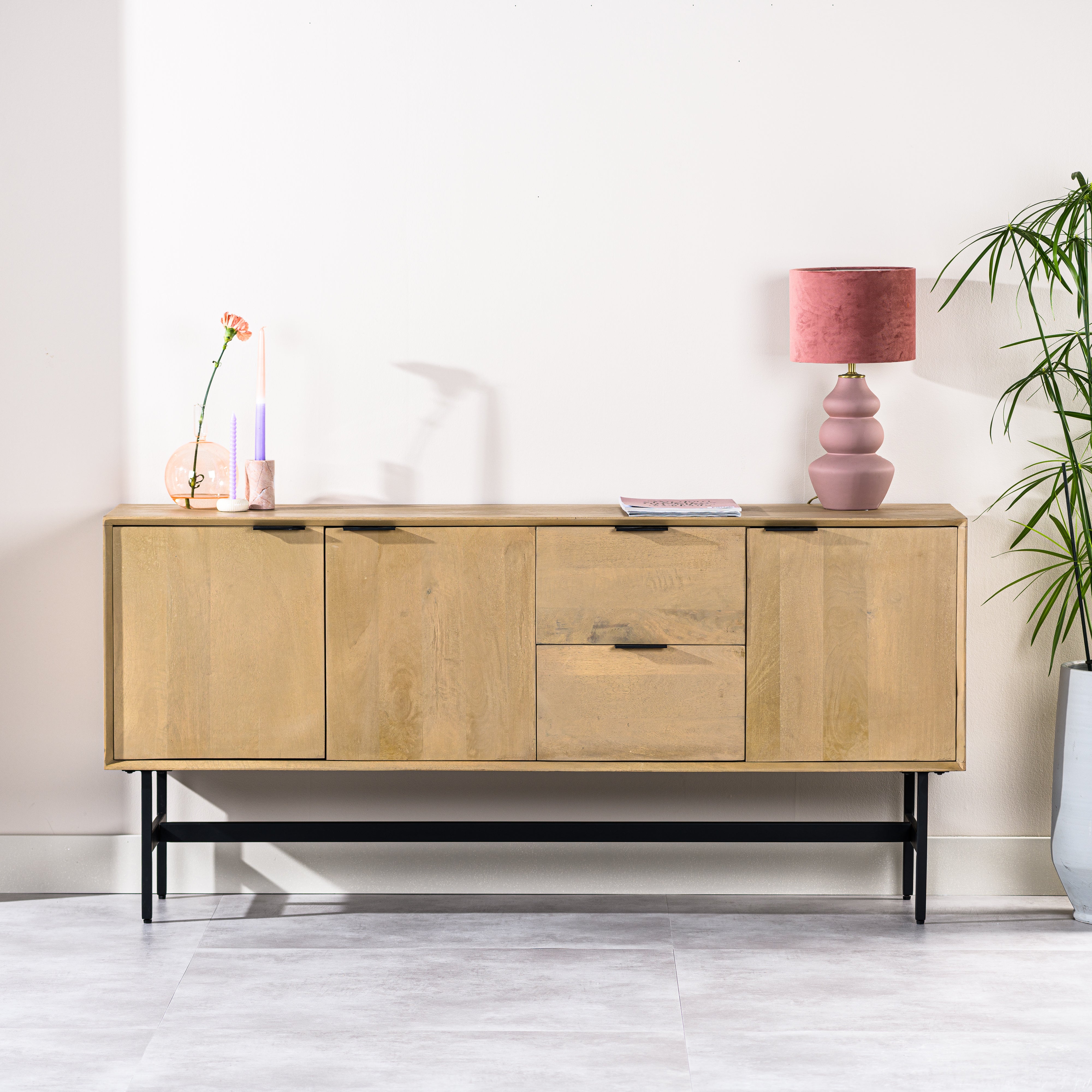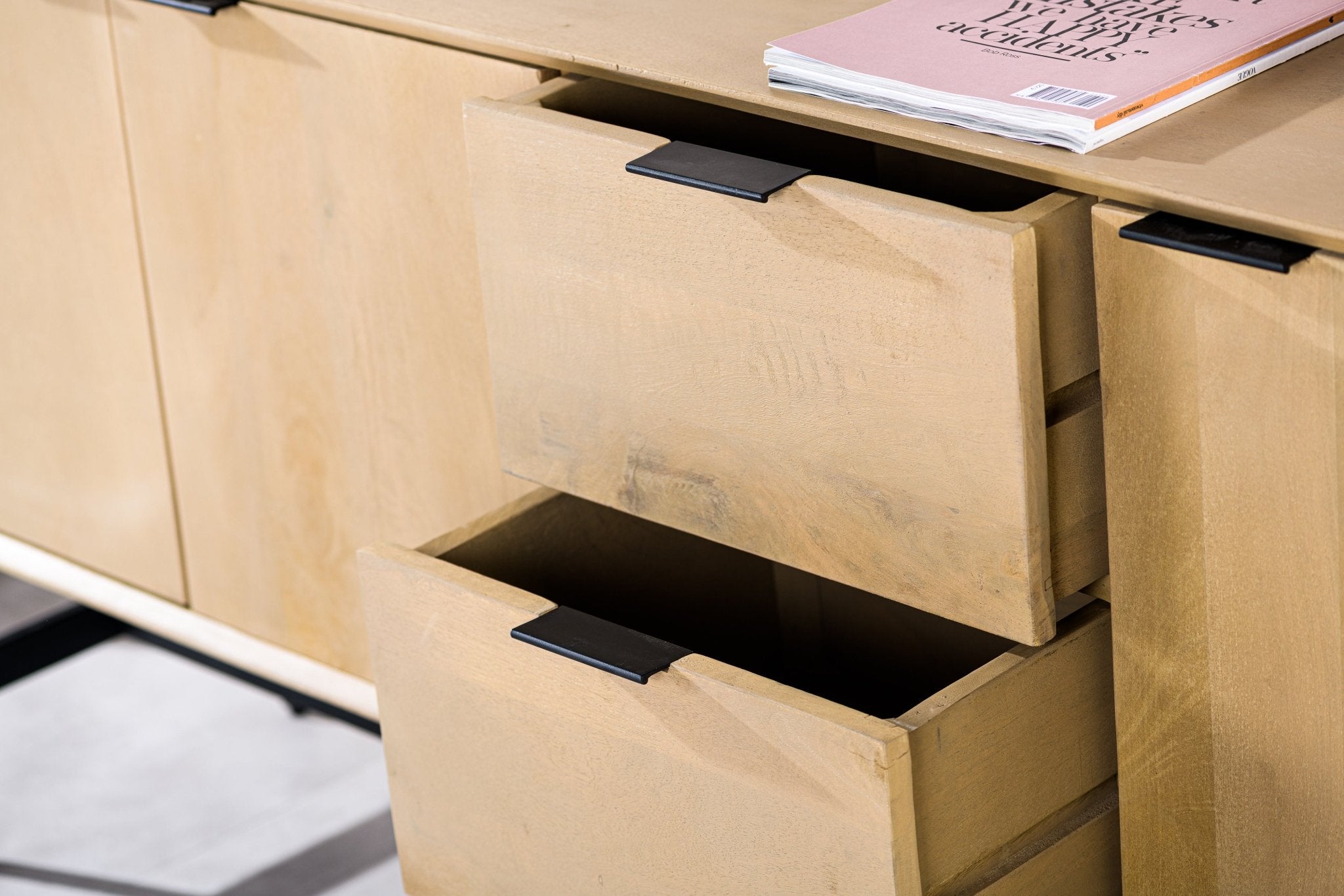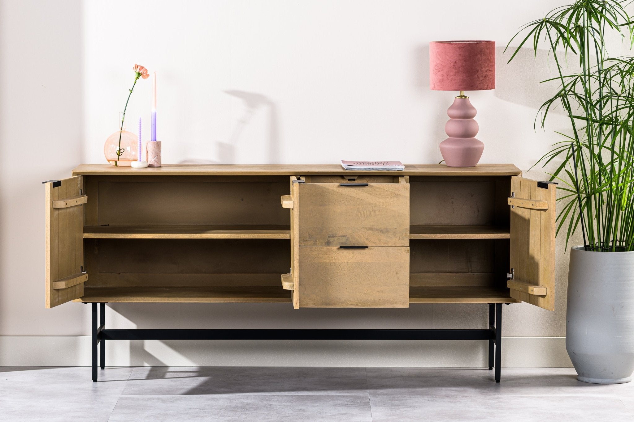 Dressoir Zayn mangohout heeft een industrieel Scandinavische look en is niet alleen stijlvol, maar ook erg praktisch dankzij de vele opbergruimte! Dit meubelstuk is een geweldige toevoeging in je woonkamer.