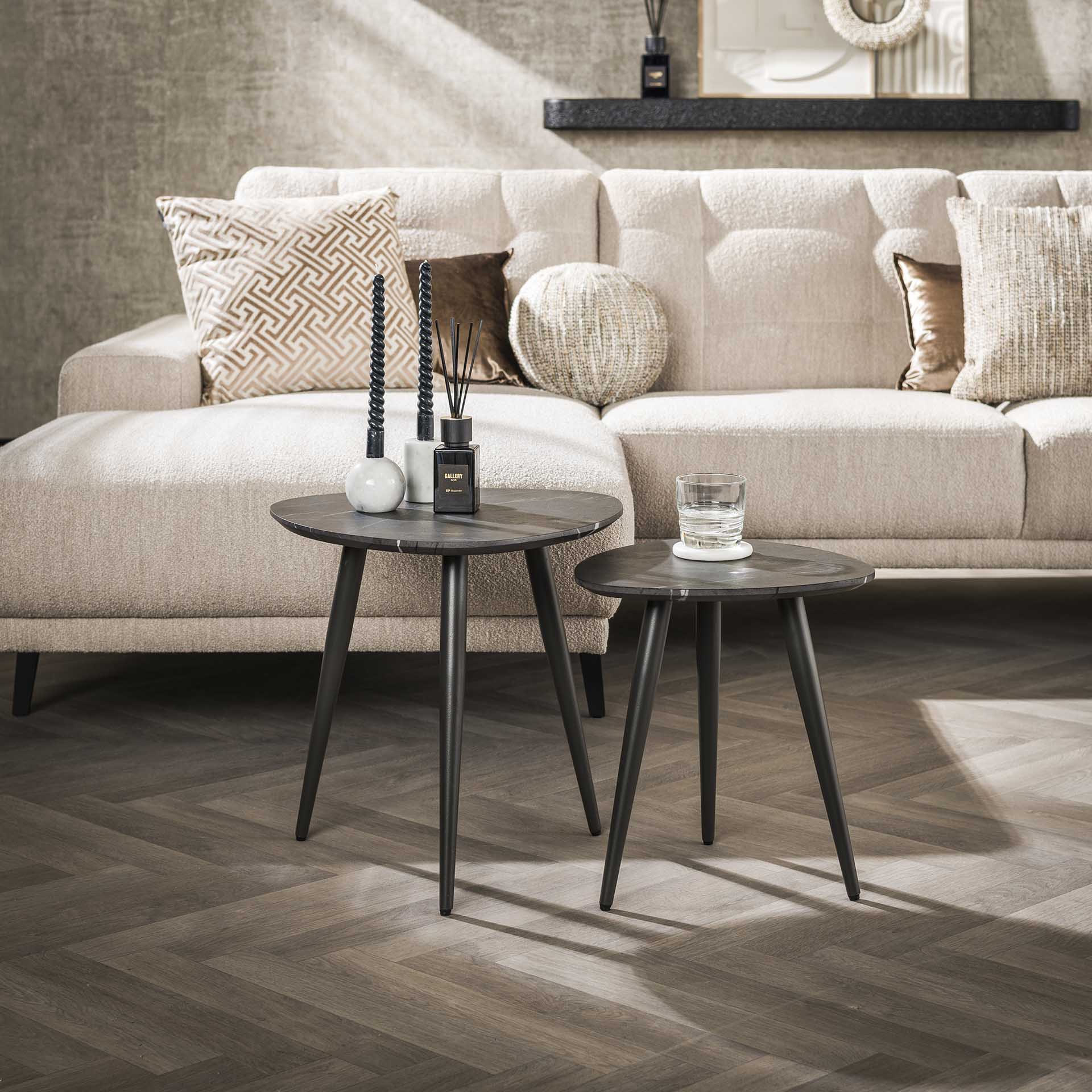De set bestaat uit twee tafels van verschillende afmetingen, die je flexibel kunt plaatsen en gebruiken naar wens. Gebruik ze samen voor een gelaagd en dynamisch effect of afzonderlijk als bijzettafels verspreid door de kamer.