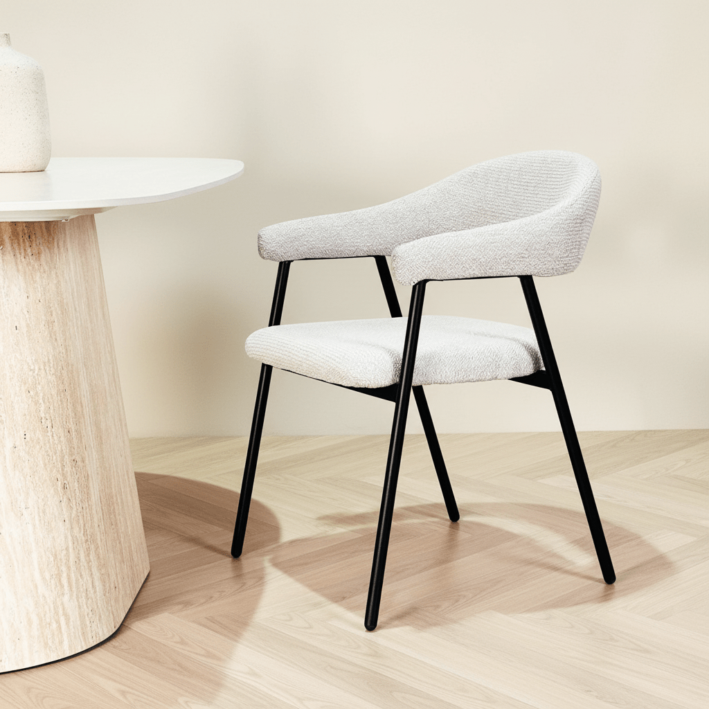 Doordat bouclé meestal in rustige, neutrale tinten komt, sluit het naadloos aan op uiteenlopende interieurstijlen en combineert het moeiteloos met strakke of organische vormen. Het materiaal is duurzaam van aard en behoudt zijn mooie look ook na langdurig gebruik, waardoor lang tafelen nooit ongemakkelijk aanvoelen. Wil je rust en toch karakter in je interieur? Met bouclé kies je voor tijdloze elegantie én comfort in één.