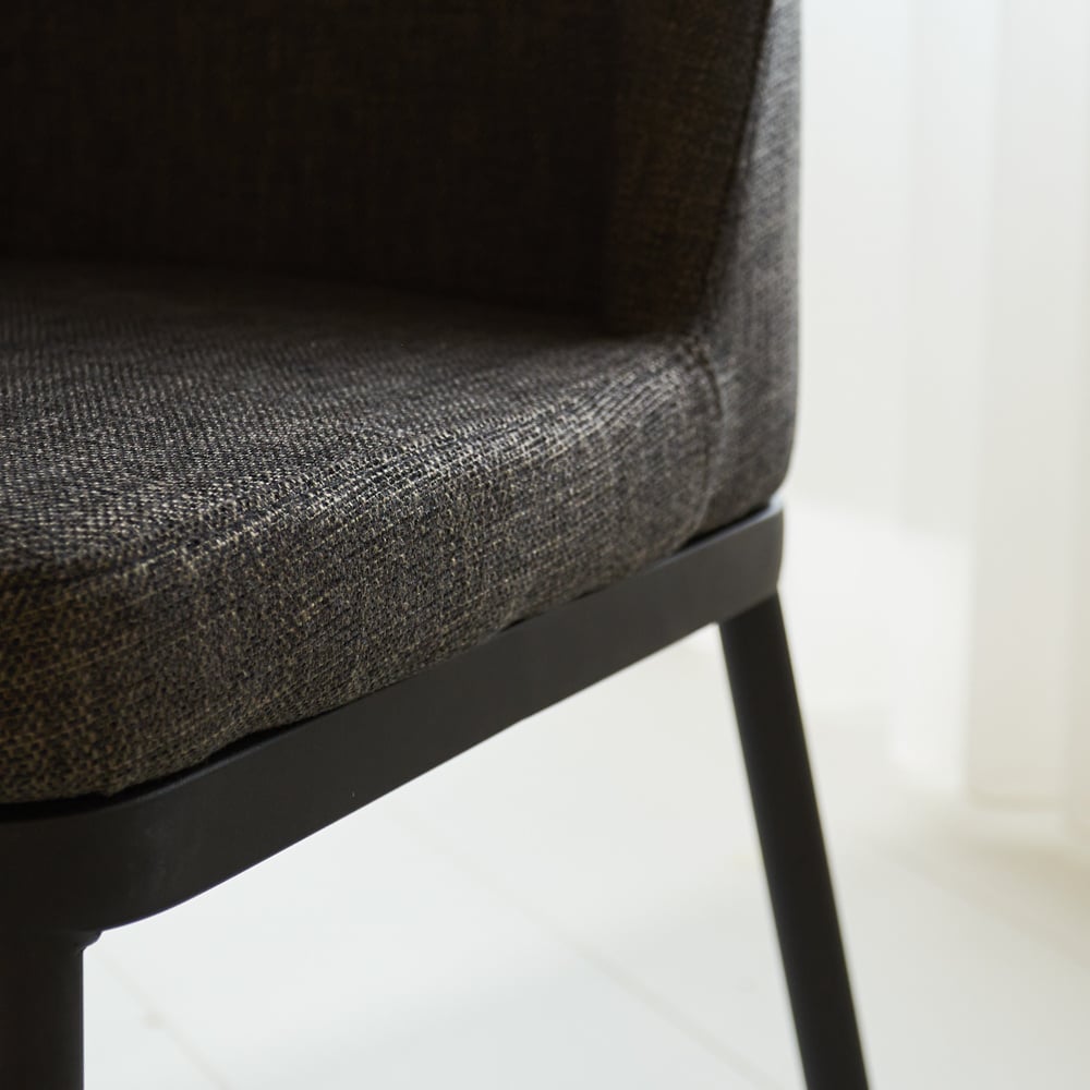Eetkamerstoel Noli geeft jouw eetkamer een stijlvolle, luxe en modern chique uitstraling. De stevige grof geweven stof voelt zacht aan en heeft een lichte glans.