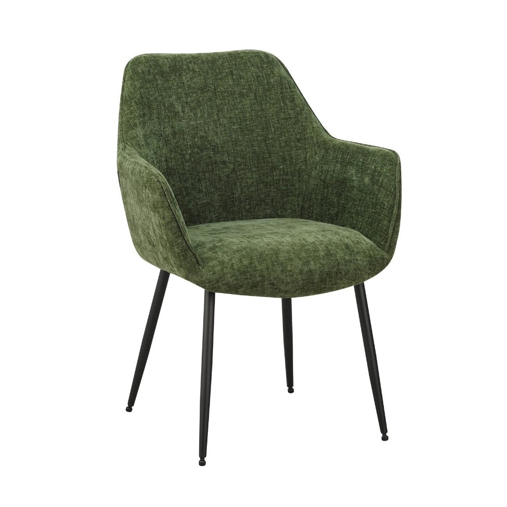 Eetkamerstoel Chenille Groen Stof Sev - Met Armleuning
