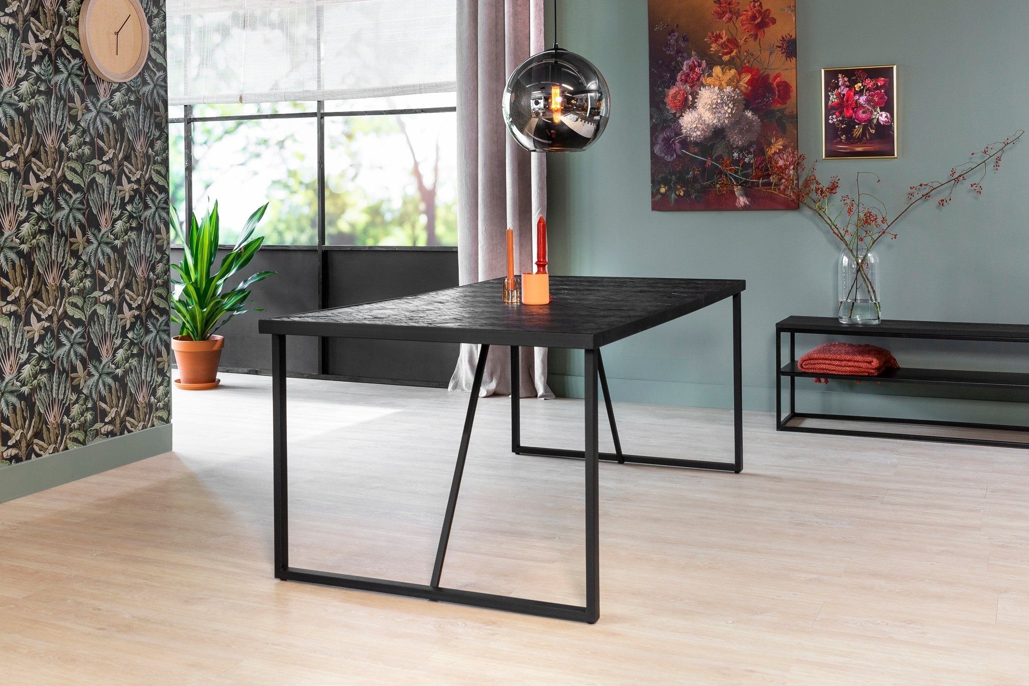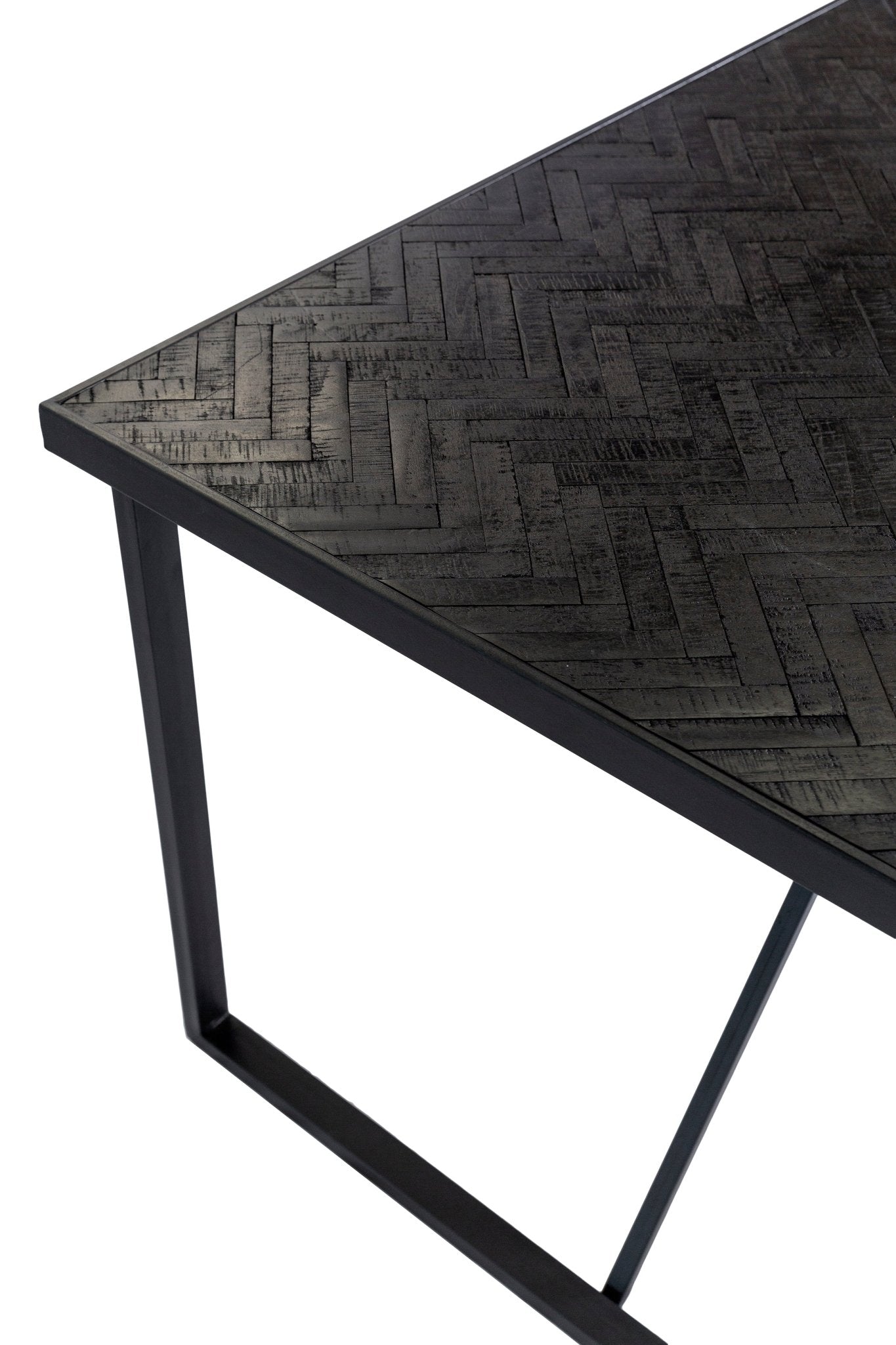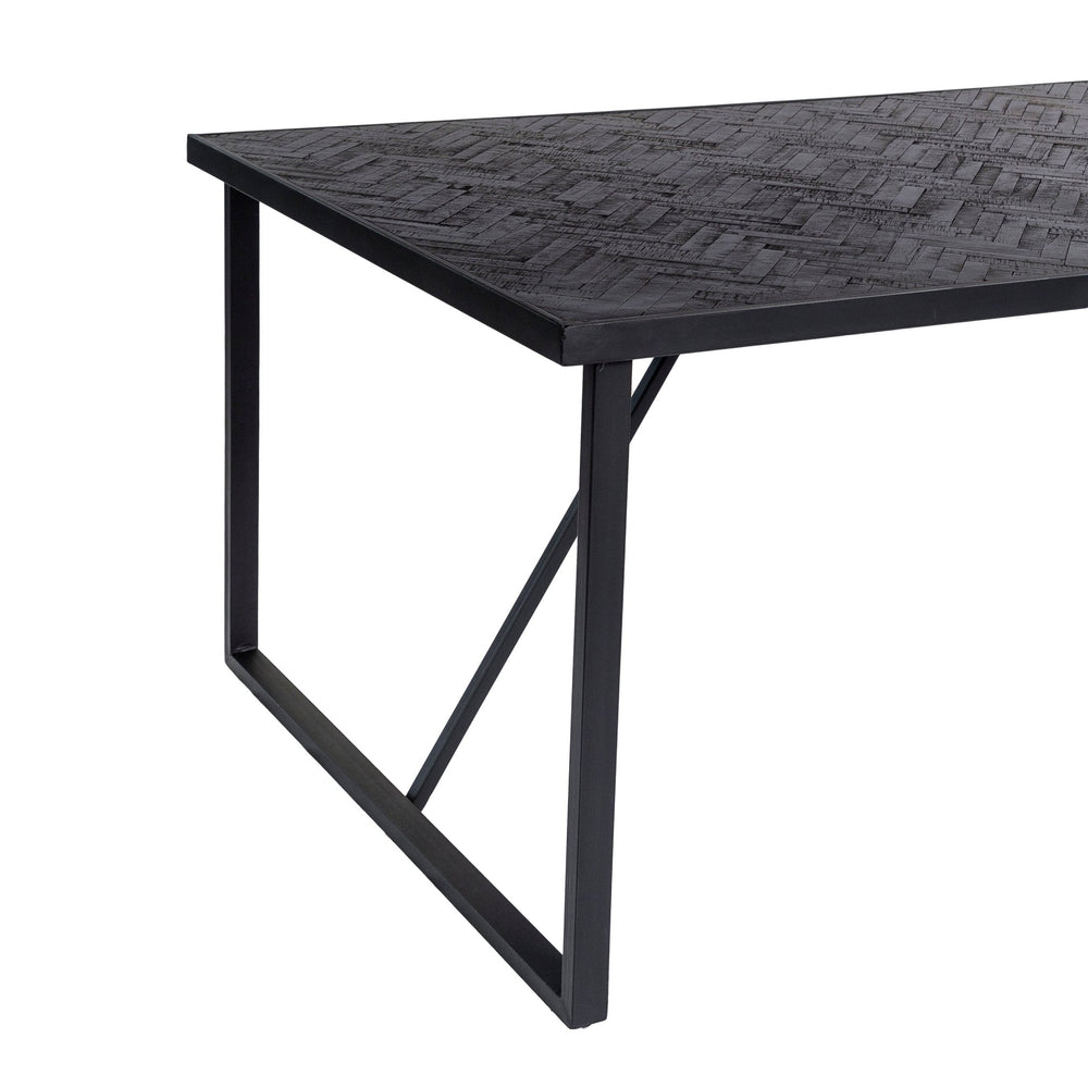 Eettafel Blackster teakhout zwart 160x90 cm is een prachtige industriële eettafel in chique zwart visgraat patroon. Door het slank afgewerkte frame en het elegant zwarte visgraat patroon, wordt industrieel middels deze eettafel Blackster nu ook chique. Dit geeft een heel andere draai aan het industrieel design.