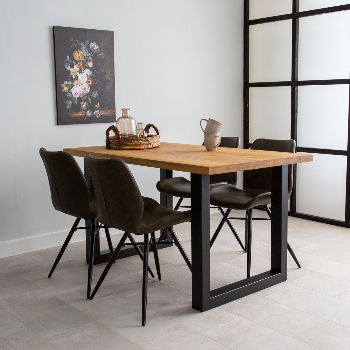 Industriële Eettafel Eikenhout U-poot Zwart Rover