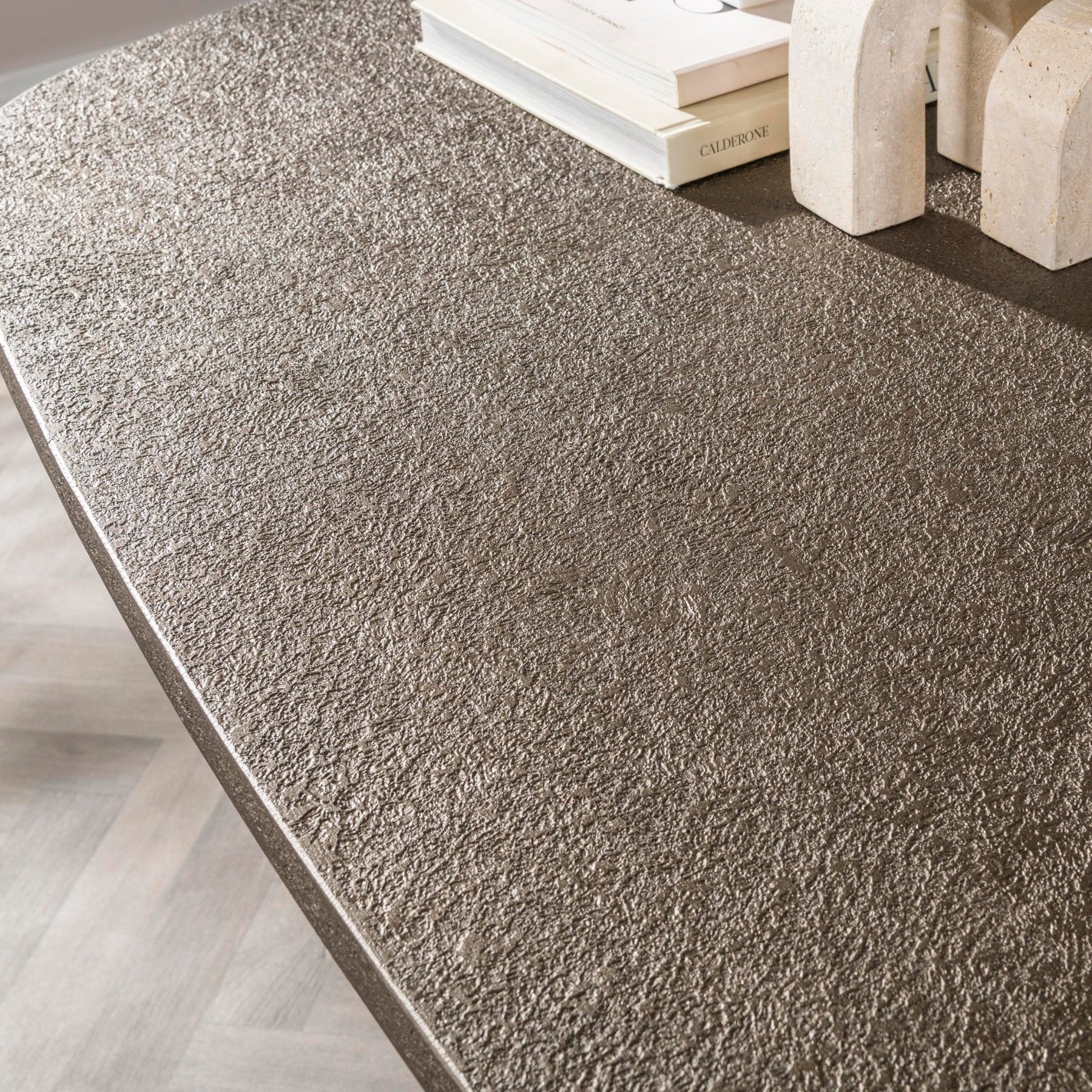 De royale afmeting biedt comfortabel plaats aan meerdere gasten, terwijl de zachte rondingen zorgen voor een vriendelijke, open sfeer. De bronzen finish geeft diepte en karakter en combineert moeiteloos met lichte houttinten, donkere accenten of juist een minimalistische basis.