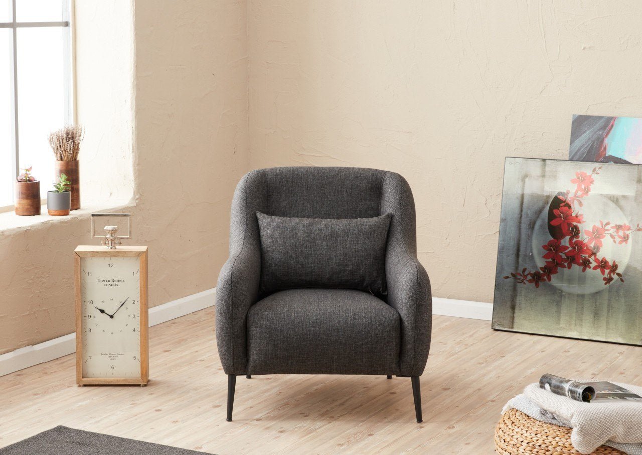 Scandinavische fauteuil Antraciet gemêleerde linnen stof met kussen Venus