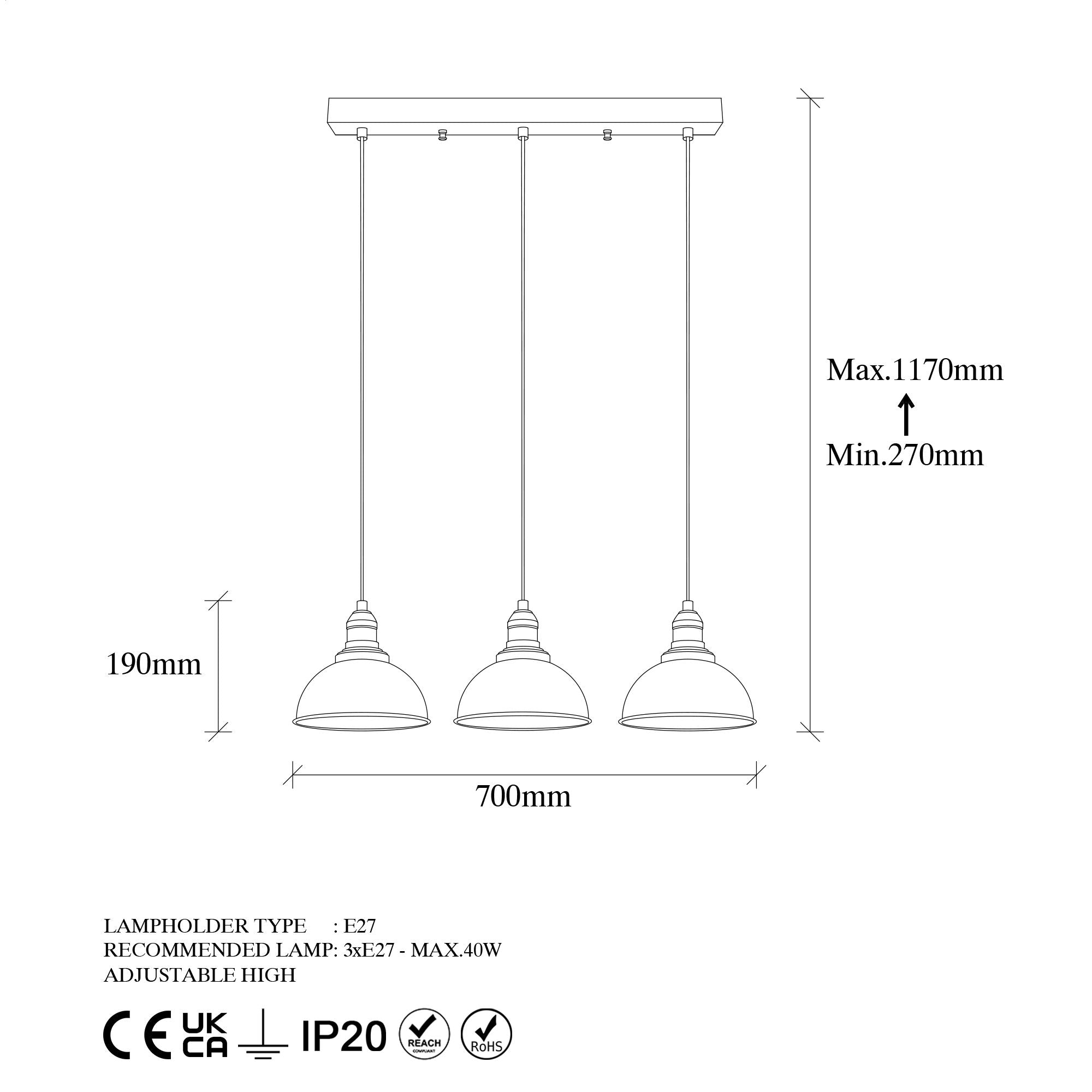 Beschrijving en specificaties van Hanglamp 3-lichts Zwart Metaal Lynx