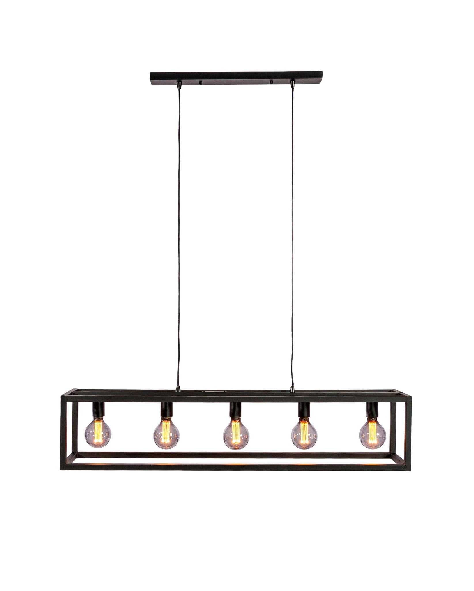 Industriële hanglamp Tibor 5-lichts zwart is een hanglamp die je niet wil missen in jouw interieur. Door het open design van de lamp krijg je een speels en sfeervol geheel in de ruimte. Tip! Gebruik heldere led lichtbronnen. Hierdoor ziet alles er nog ruimtelijker uit! De lamp is in hoogte verstelbaar.