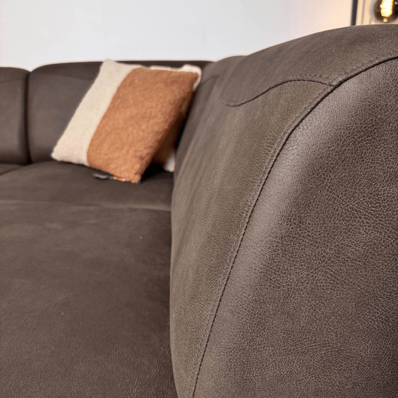 Deze bank is bekleed met Leermix gemaakt van 65% polyester/35% leer. Dit is een hoogwaardige samengestelde stof waarin echte leervezels zijn gebonden op een duurzame textieldrager. Zo krijg je de luxe uitstraling van leer tegen een vriendelijkere prijs. Het eco-leer bestaat uit een melange van synthetische vezels en heeft maar liefst 40.000 Martindale, wat gelijk staat aan 40.000 zituren. Deze bank is daardoor erg sterk en slijtvast en kan jaren lang mee!