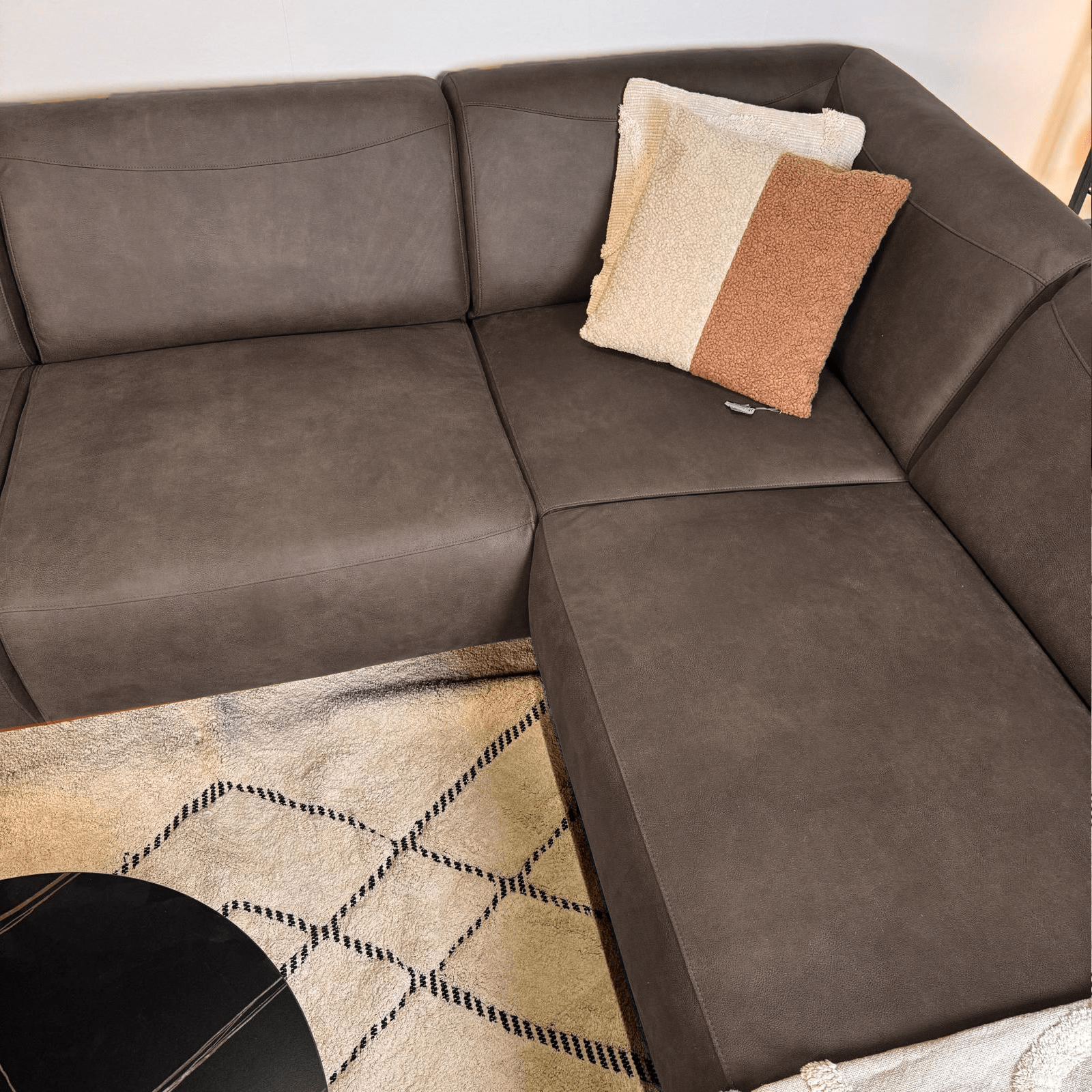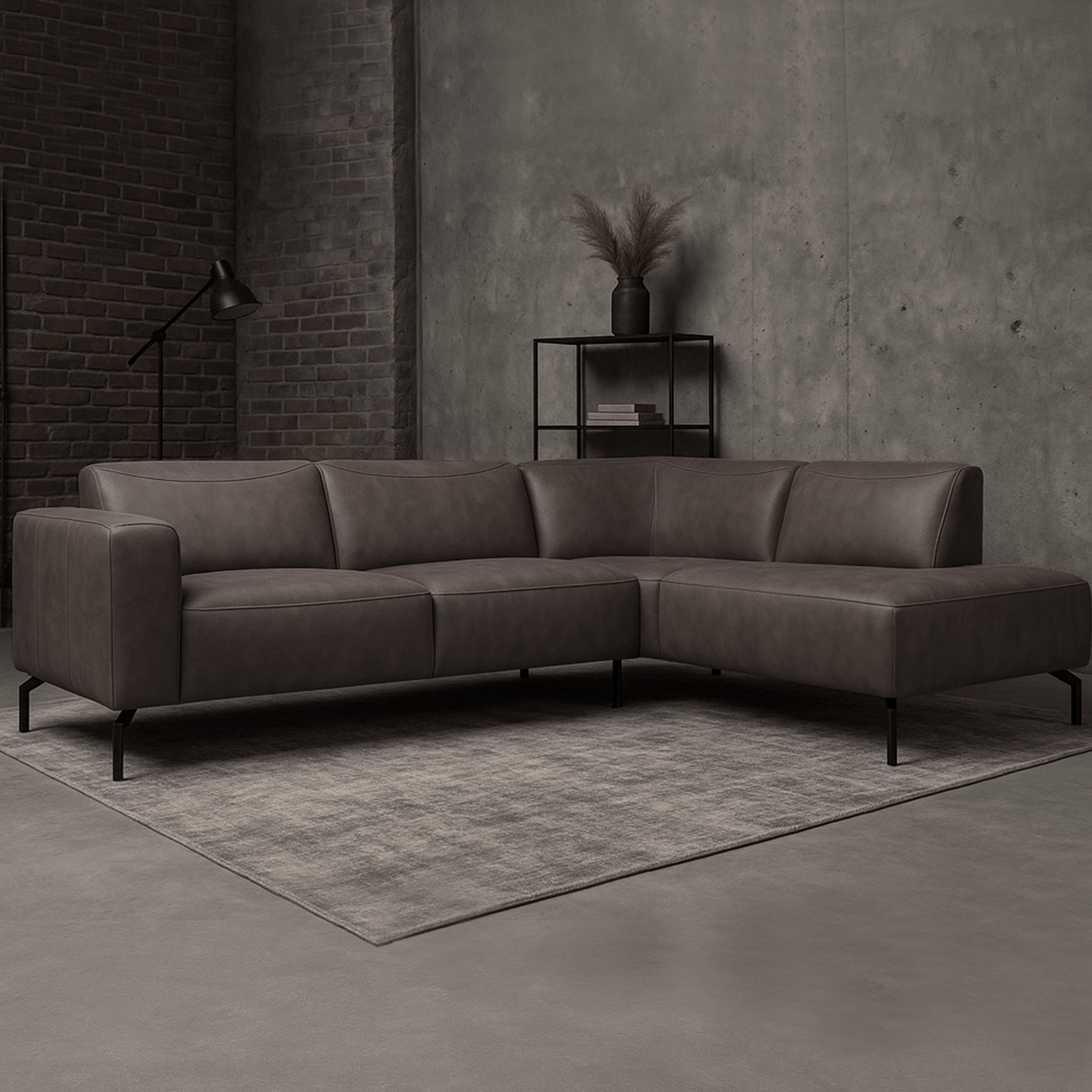 Hoekbank antraciet robuust eco-leer Barin - rechts sfeerfoto in modern interieur