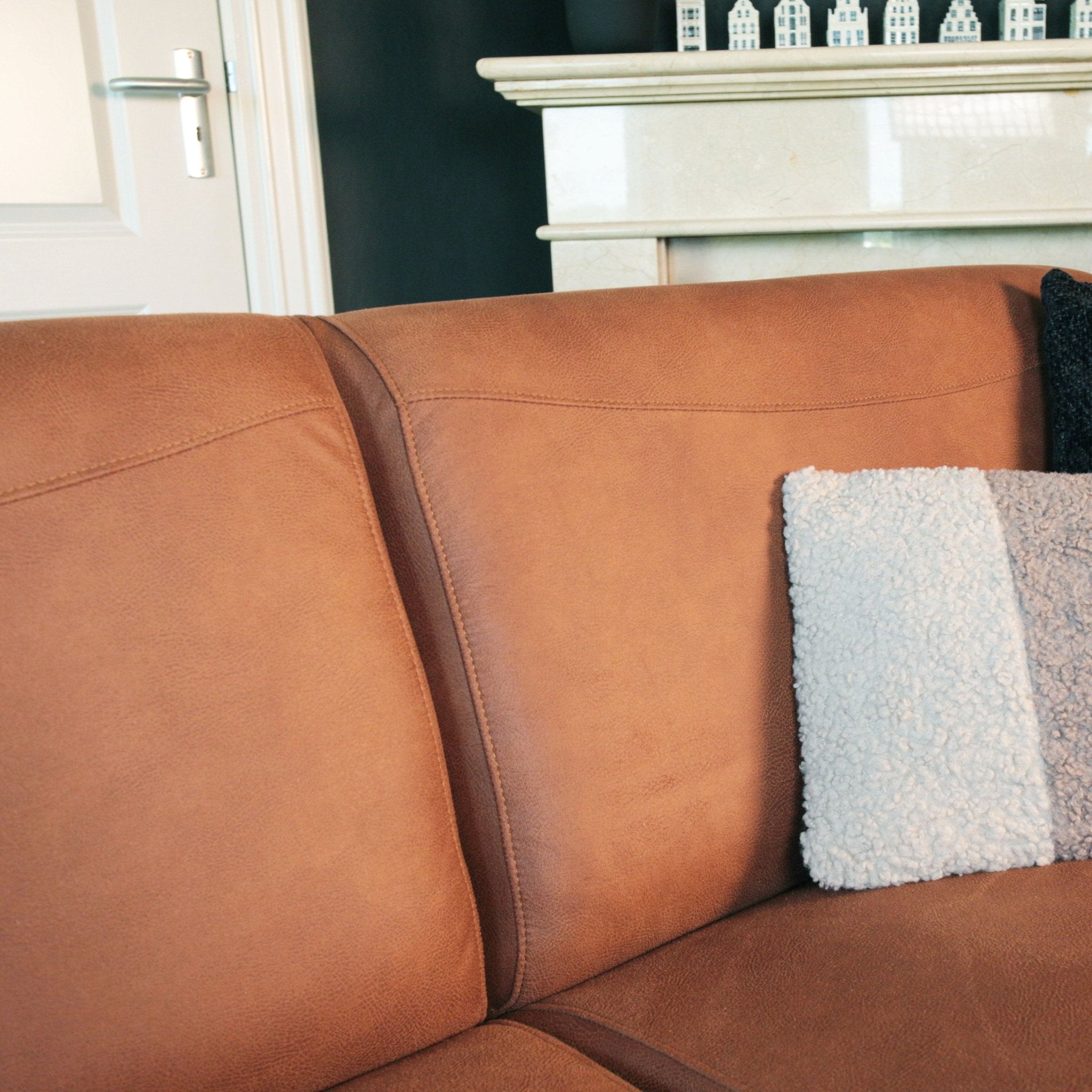 Deze bank is bekleed met Leermix gemaakt van 65% polyester/35% leer. Dit is een hoogwaardige samengestelde stof waarin echte leervezels zijn gebonden op een duurzame textieldrager. Zo krijg je de luxe uitstraling van leer tegen een vriendelijkere prijs. Het eco-leer bestaat uit een melange van synthetische vezels en heeft maar liefst 40.000 Martindale, wat gelijk staat aan 40.000 zituren. Deze bank is daardoor erg sterk en slijtvast en kan jaren lang mee!