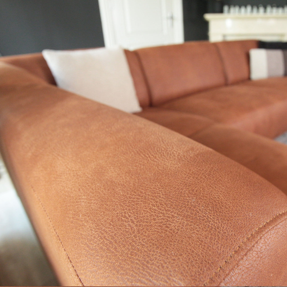 Industriële Hoekbank Ecoleer Cognac Barin - Links