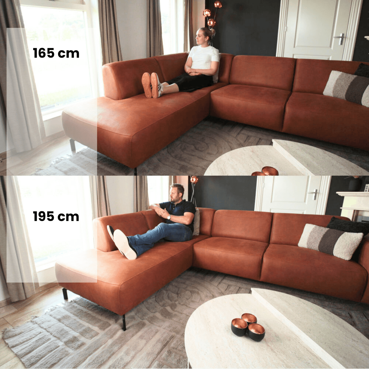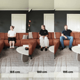 Dit bankstel is getest door drie personen variërend van 165 cm tot 195 cm. Voor de persoon van 165 cm viel op dat de zitting diep is, waardoor de gebruiker niet met de voeten bij de vloer kan als ze volledig rechtop gaat zitten. De gebruikers van 180 en 195cm zaten ook prima op deze bank en hadden geen specifieke opmerkingen.