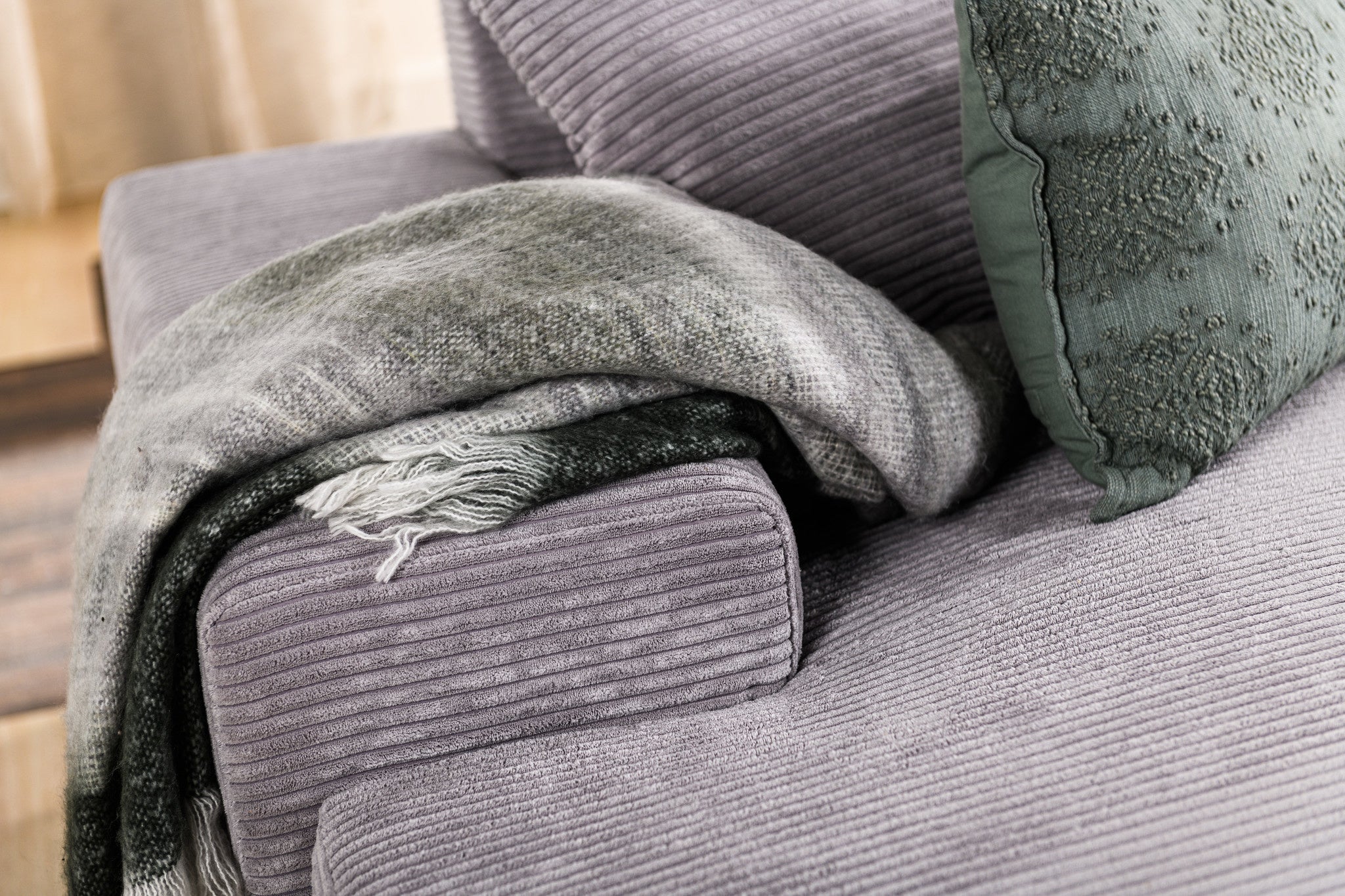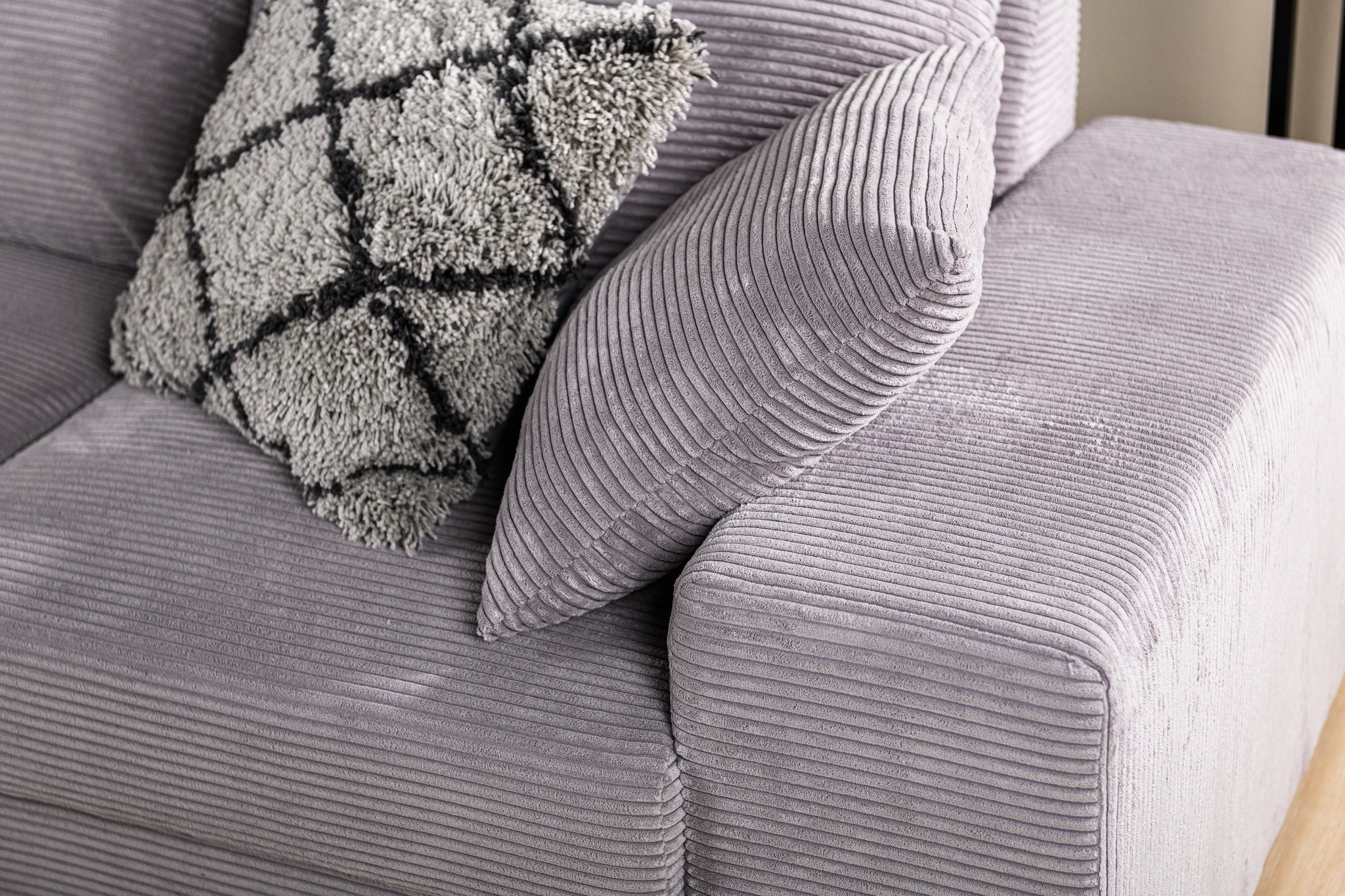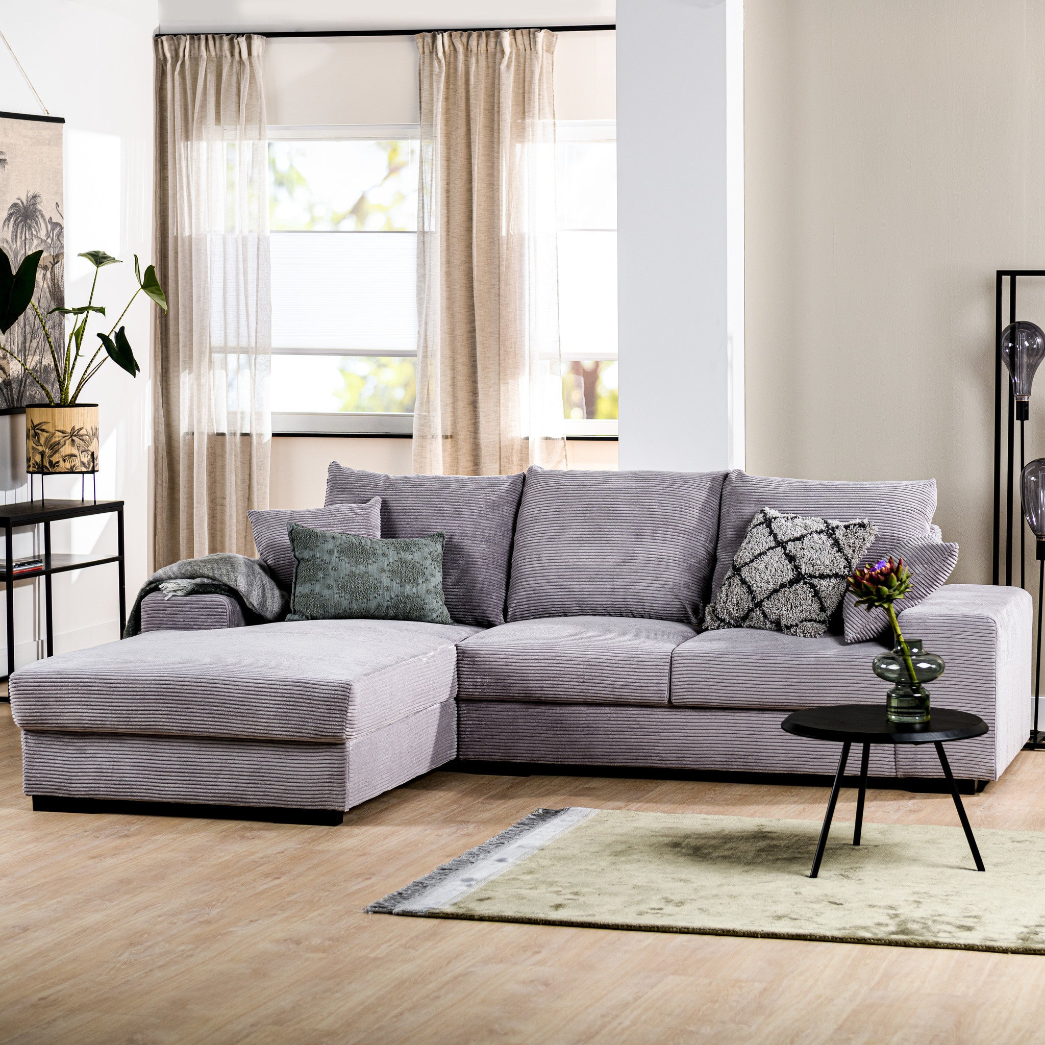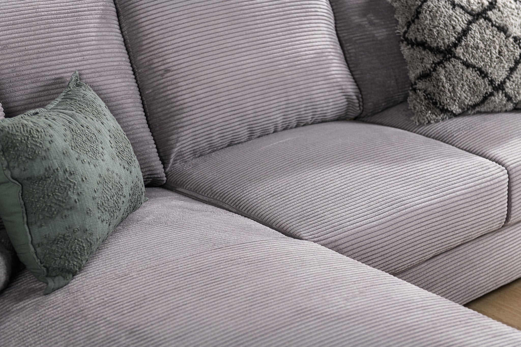 Hoekbank Cambridge ribstof grijs links