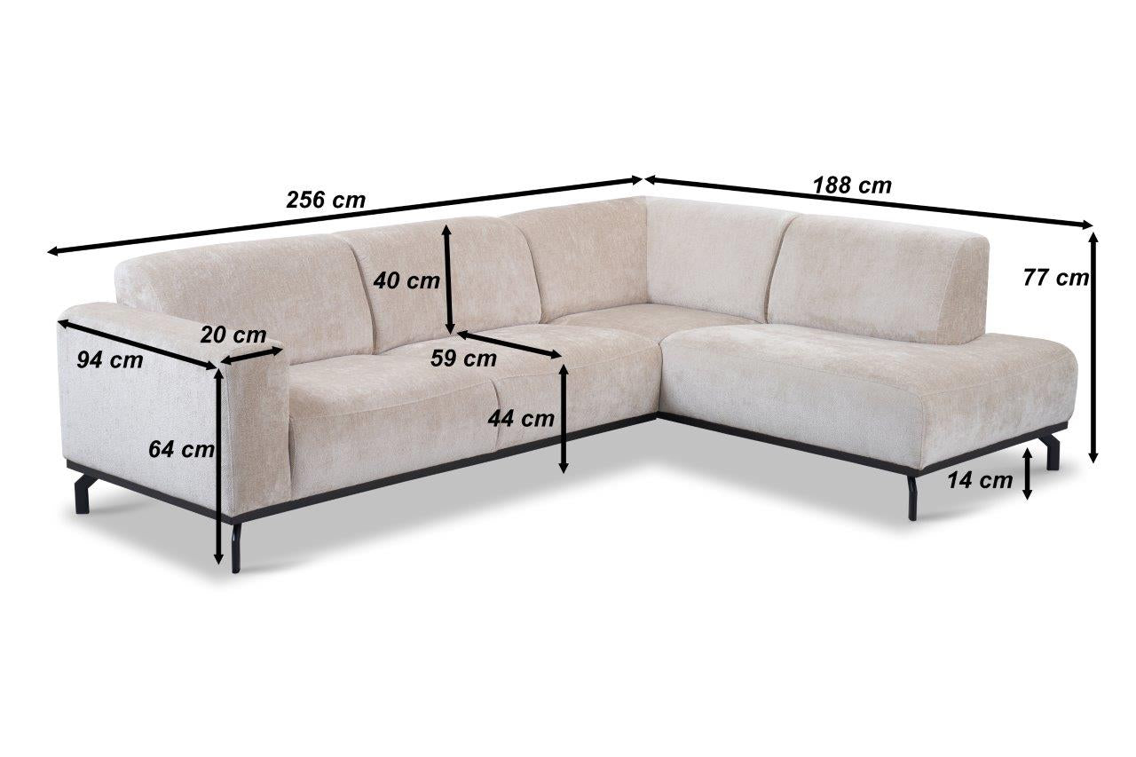 Beschrijving en specificaties van Hoekbank met hoge poten beige velvet Chloe - links