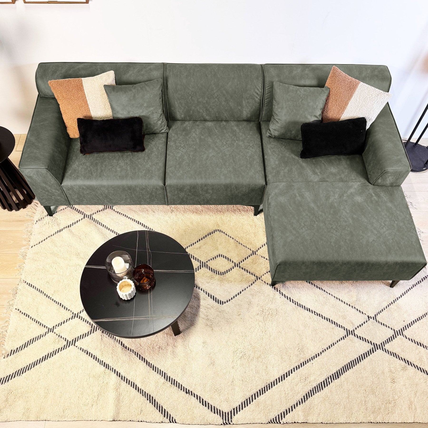 Ben jij op zoek naar een stoere groene hoekbank met een korte lounge? Dan is de Davidson de hoekbank die jij zoekt! Deze stoere kleur brengt sfeer in elke woonkamer, terwijl het design een perfecte balans biedt tussen functionaliteit en elegantie. De compacte hoekbank met korte chaise longue is perfect voor kleinere woonkamers.