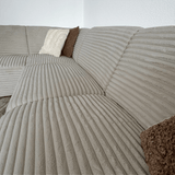 Hoekbank beige super zachte ribstof Gavi - links