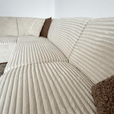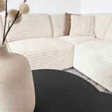 Hoekbank crème super zachte ribstof Gavi - links