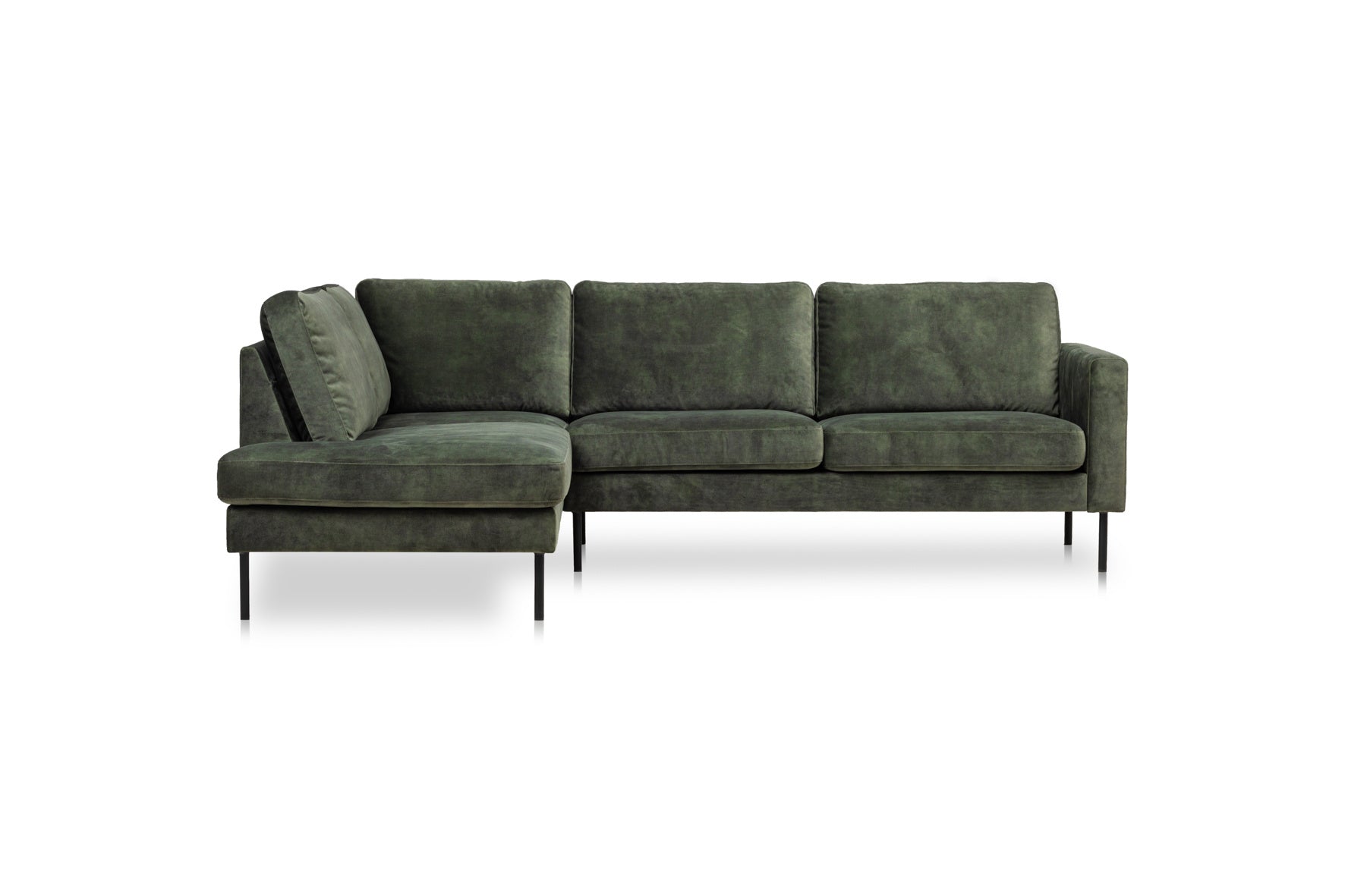 Beschrijving en specificaties van Hoekbank groen velvet hoge poten Gaya - links