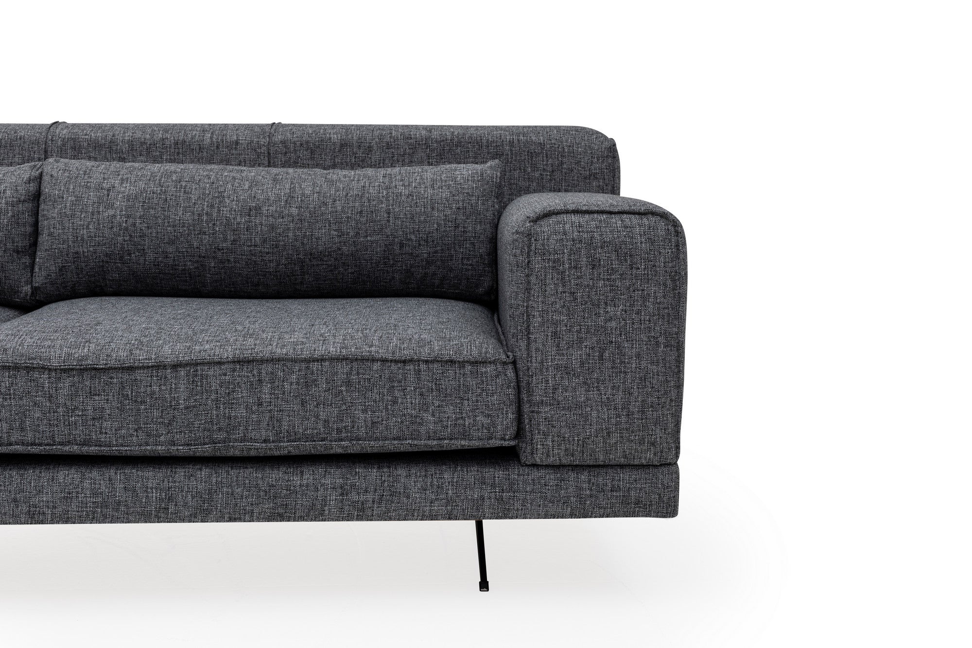 Het strakke en moderne ontwerp van onze hoekbank wordt aangevuld door de matzwarte metalen poten, die een vleugje industriële en scandinavische charme aan je ruimte toevoegen. De chemisch reinigbare stof zorgt voor eenvoudig onderhoud, waardoor deze bank een praktische keuze is voor drukke huishoudens.