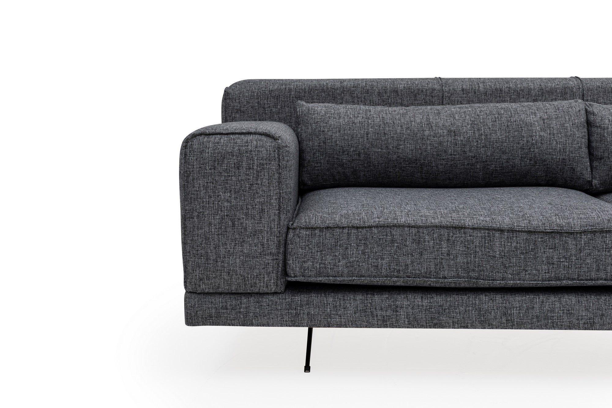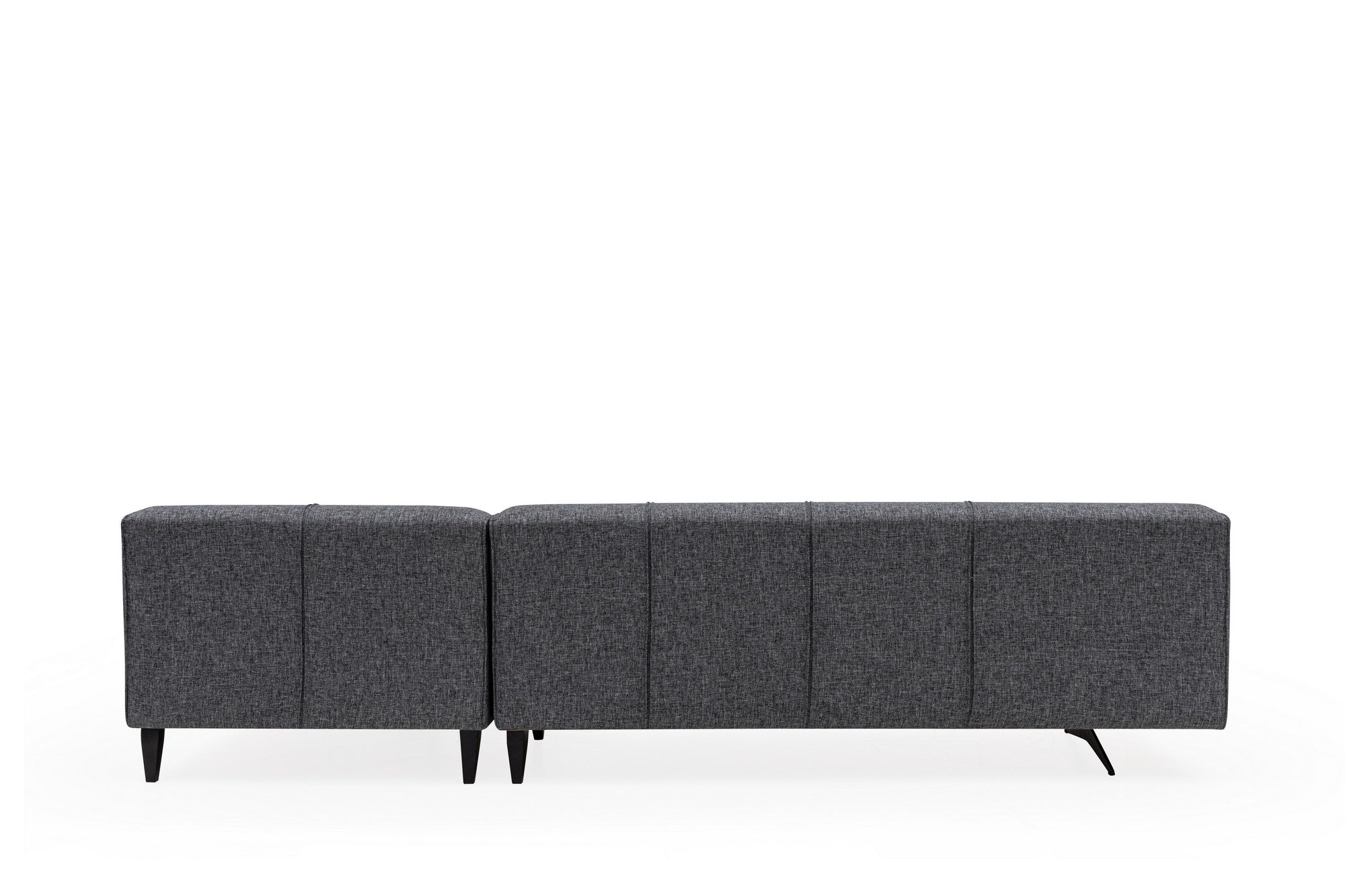 Het strakke en moderne ontwerp van deze hoekbank zal moeiteloos de stijl van elke kamer verhogen. De effen kleur in antracietgrijs voegt een vleugje verfijning toe, waardoor het de perfecte aanvulling is op elke industriële of scandinavisch geïnspireerde inrichting.