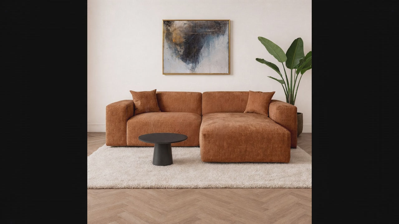 Hoekbank koper chenille Wayne 264 cm - hoek links en rechts monteerbaar