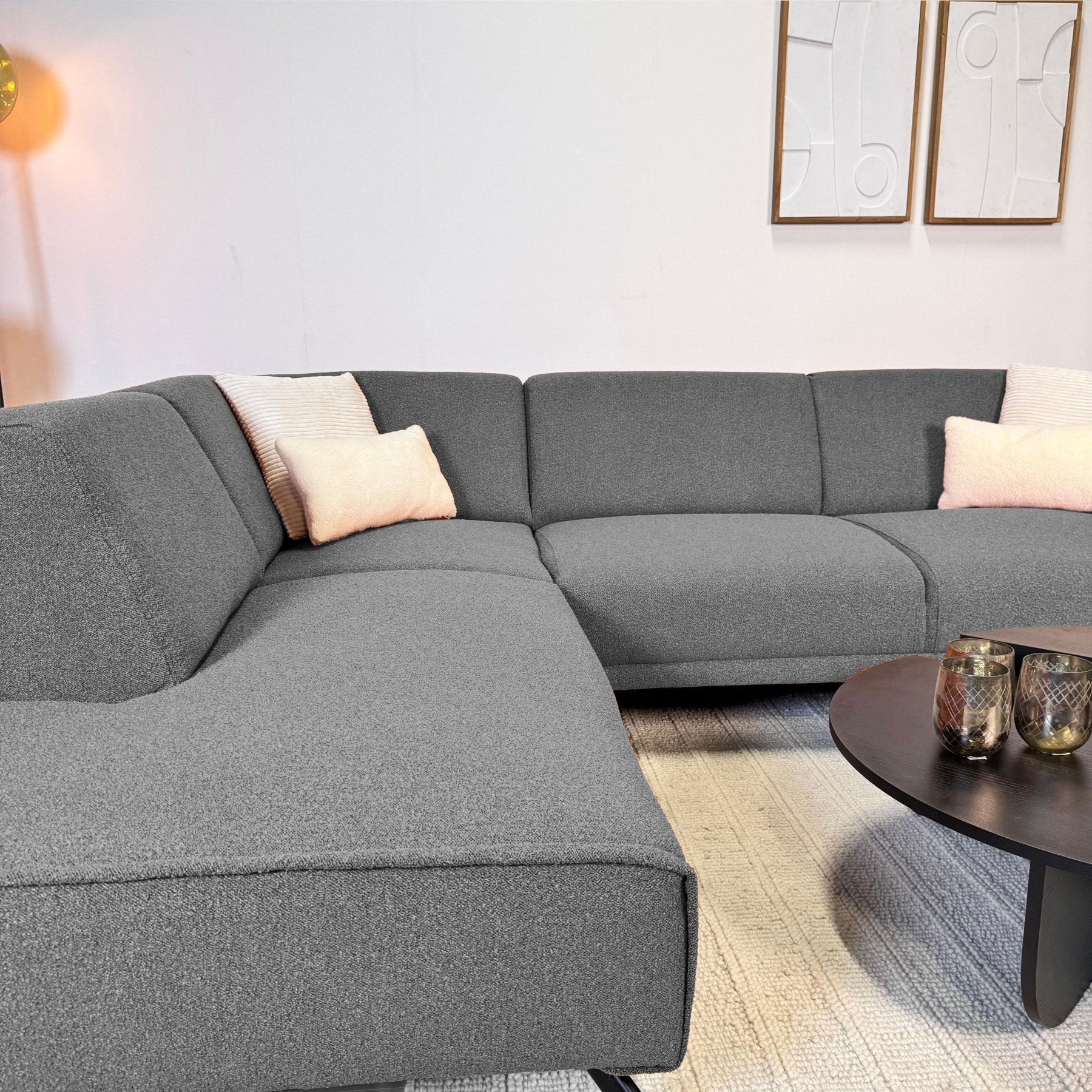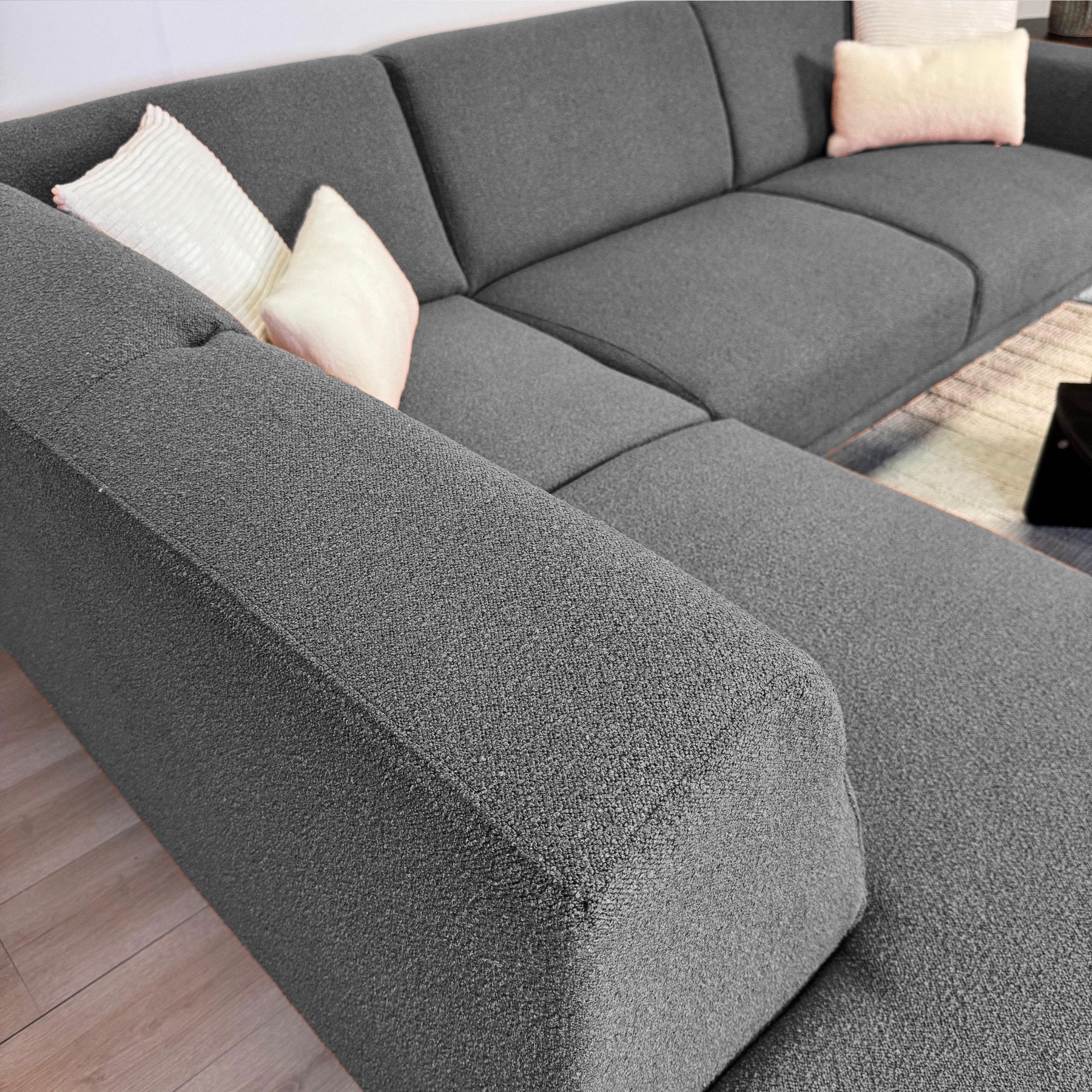 Ben jij op zoek naar een grote, comfortabele hoekbank in bouclé stof? En wil je dat jouw hoekbank het middelpunt wordt van jouw woonkamer? Dan is de hoekbank Maël in grijze kleur een uitstekende optie!