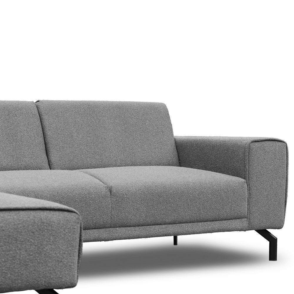 Beschrijving en specificaties van Hoekbank grijs bouclé stof Maël - links
