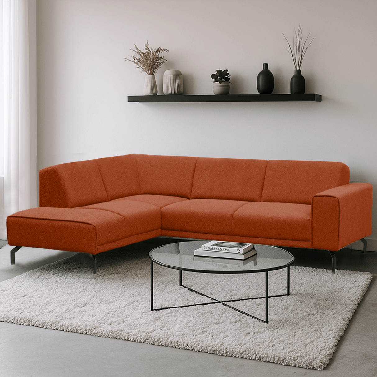 Ben jij op zoek naar een grote, comfortabele hoekbank in bouclé stof? En wil je dat jouw hoekbank het middelpunt wordt van jouw woonkamer? Dan is de hoekbank Maël in terracotta kleur een uitstekende optie!