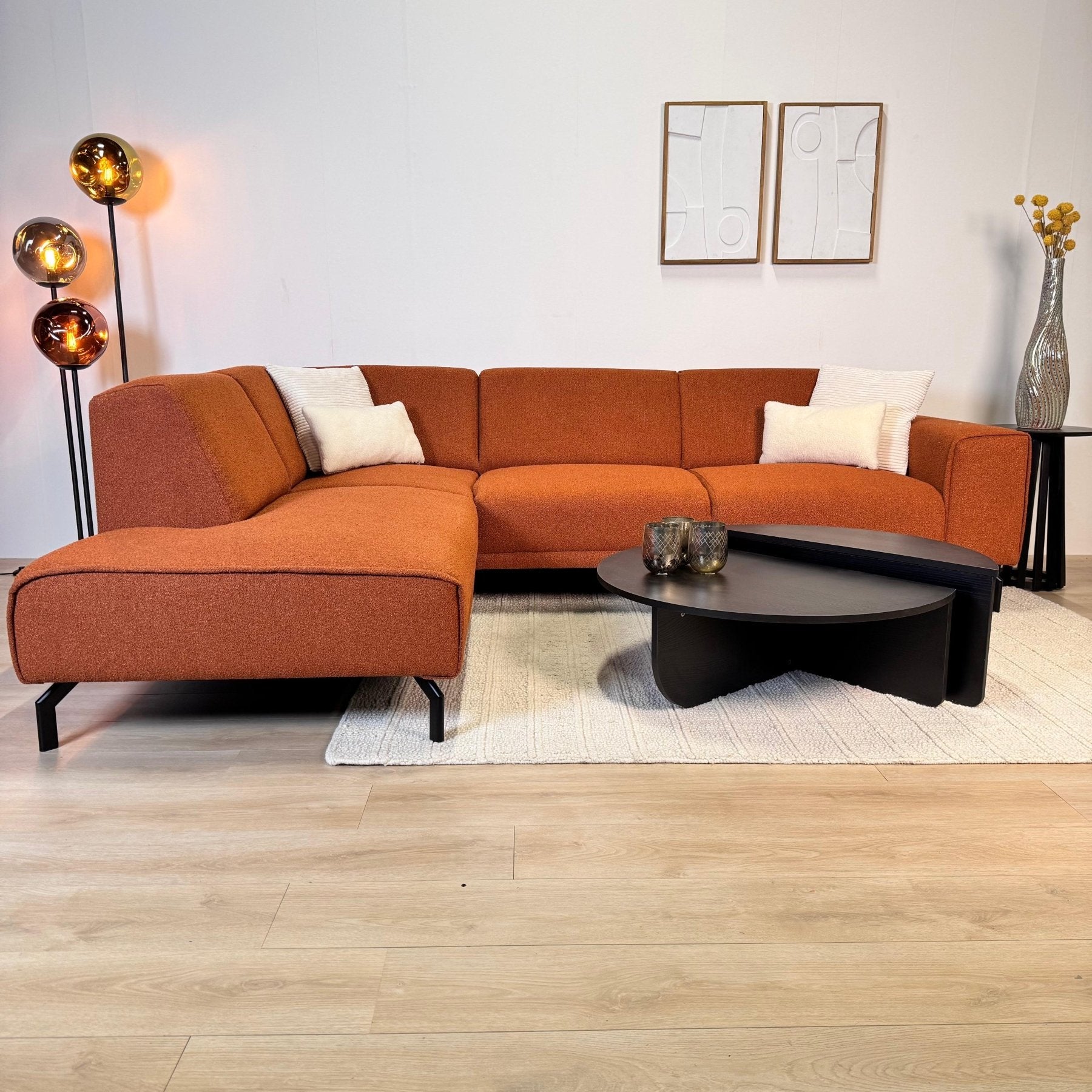 Hoekbank terracotta bouclé stof Maël - links