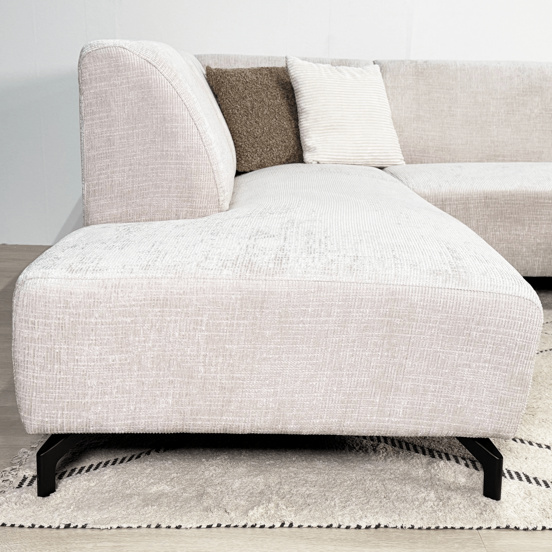 Hoekbank met chaise longue beige chenille stof Manon - links