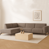 Hoekbank met chaise longue taupe chenille stof Manon - links