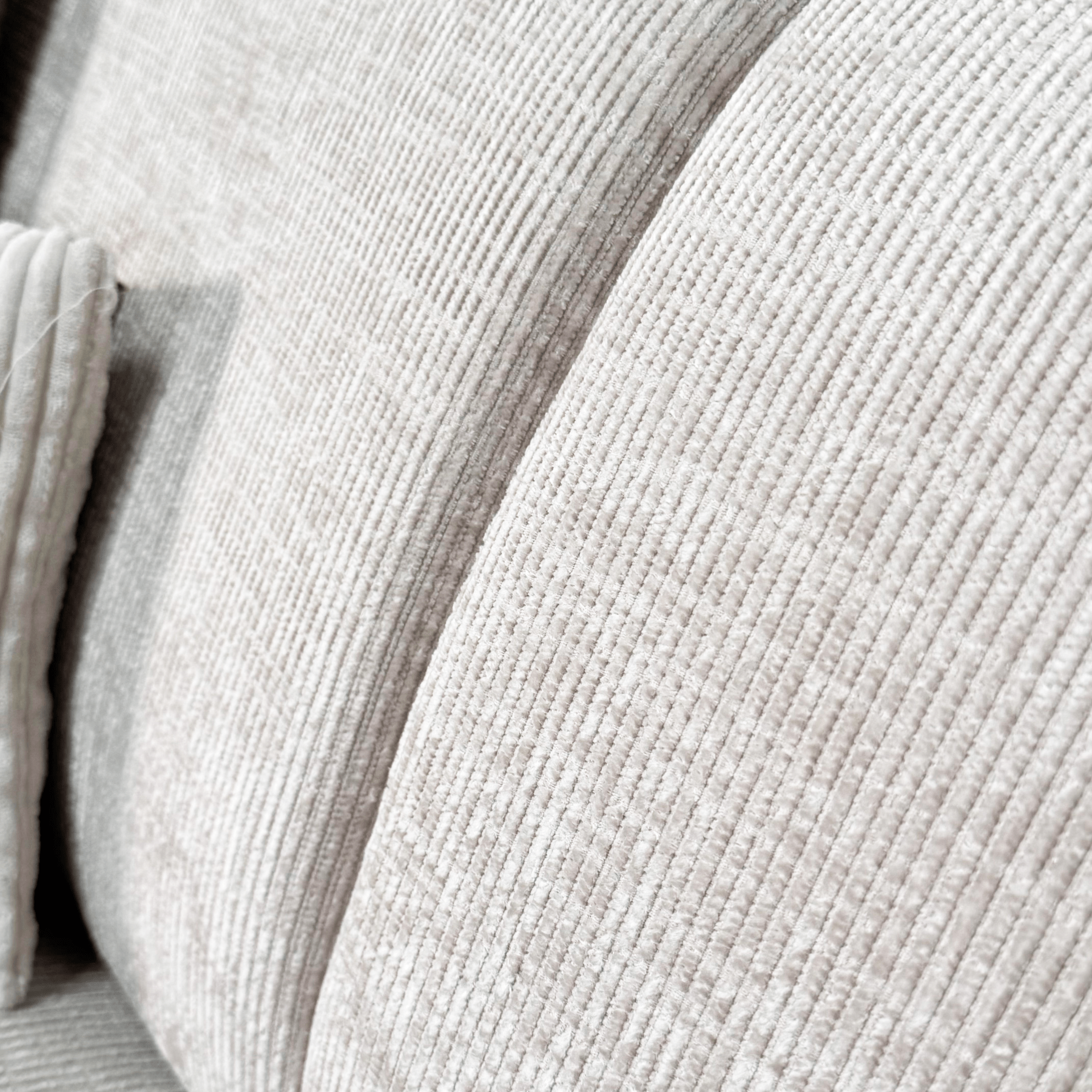 De bank is bekleed met hoogwaardig grof chenille, een duurzame stof die bestand is tegen slijtage en tegelijkertijd een zachte, luxueuze textuur biedt. De grof geweven chenille stof geeft de bank een opvallende textuur en een rijke uitstraling.