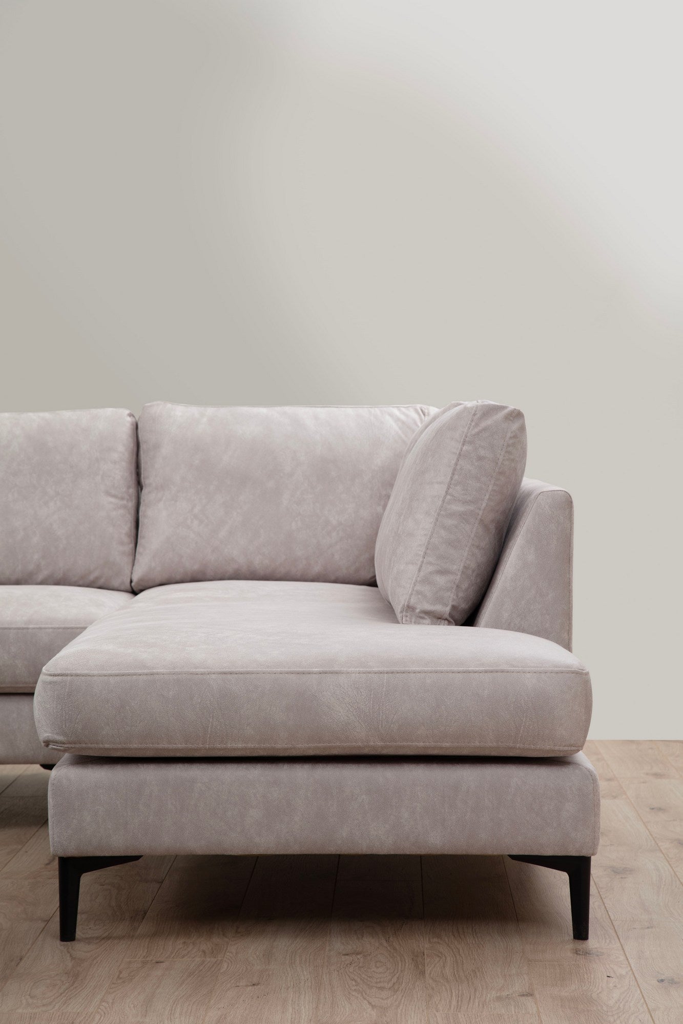 Geniet van de ultieme ontspanning als je wegzakt in de pluche kussens van onze hoekbank. De 28 dns zacht grijs schuim en de 24 dns veren in het midden zorgen voor de perfecte balans tussen ondersteuning en zachtheid en garanderen urenlang zalig comfort. Het vaste zitkussen en vaste rugkussen bieden een naadloze en luxueuze zitervaring.