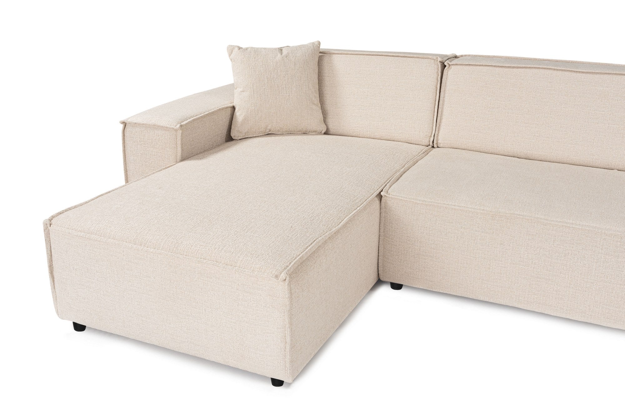 Met zijn strakke en moderne ontwerp voegt onze hoekbank een vleugje verfijning toe aan elke kamer. De 100% polyester stof in een prachtige beige kleur past bij elke inrichting, terwijl de zwart gelakte houten poten een vleugje elegantie toevoegen. De vaste zit- en rugkussens zorgen ervoor dat de bank zijn vorm en structuur behoudt, zelfs na jarenlang gebruik.