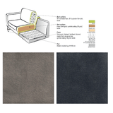 Het binnenwerk van de bank is gemaakt van massief spaanplaat. De kussens zijn gevuld met HR30 schuim en liggen op een meeverende zigzag bodem waardoor extra comfort is gegarandeerd. Het schuim van de zitting bevat een een extra bonell vering. Over de kussens is tevens een laag dacron getrokken om de zit nog comfortabeler te maken.
