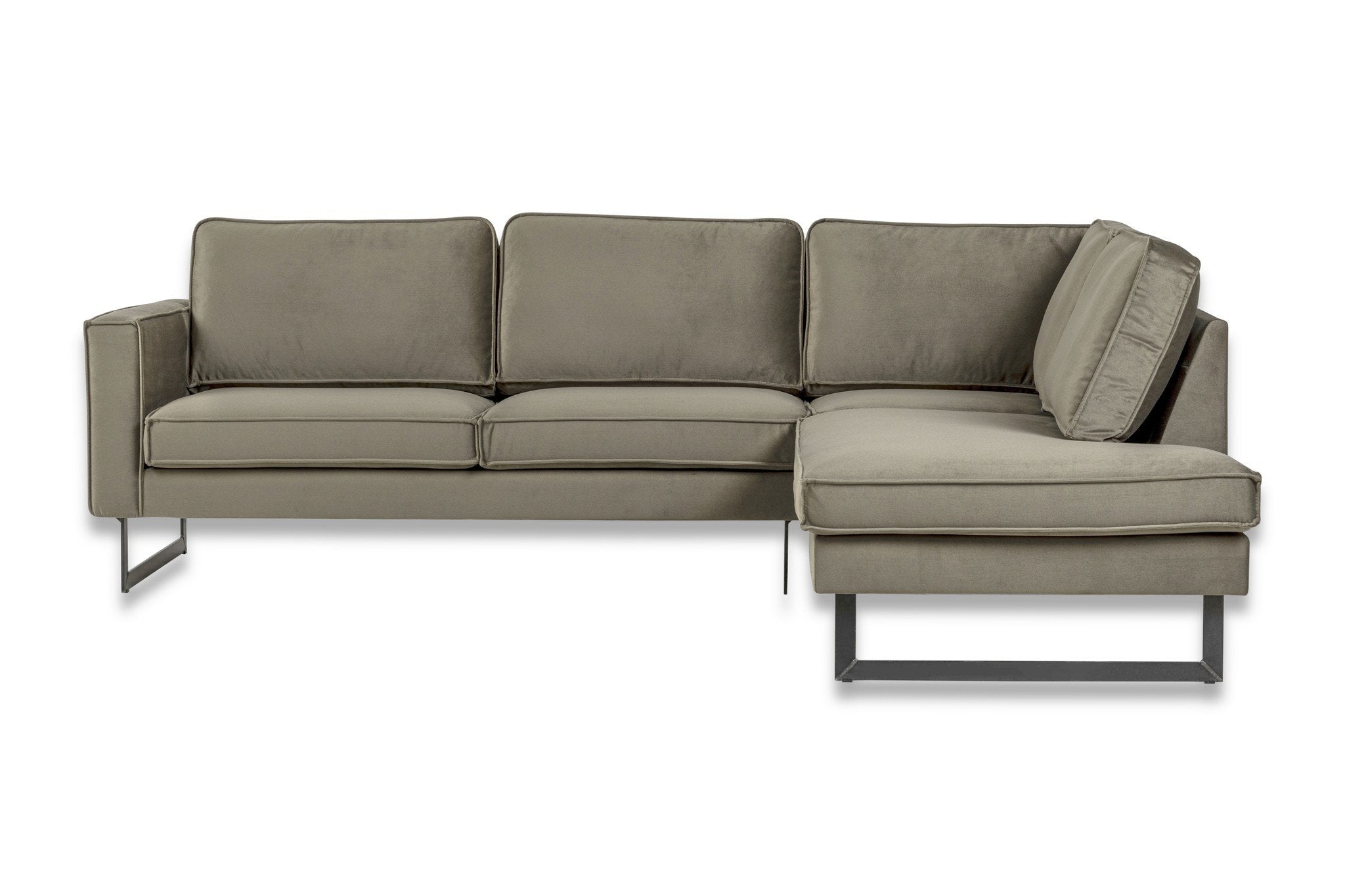Beschrijving en specificaties van Hoekbank losse kussens champagne taupe velvet Quinn - rechts