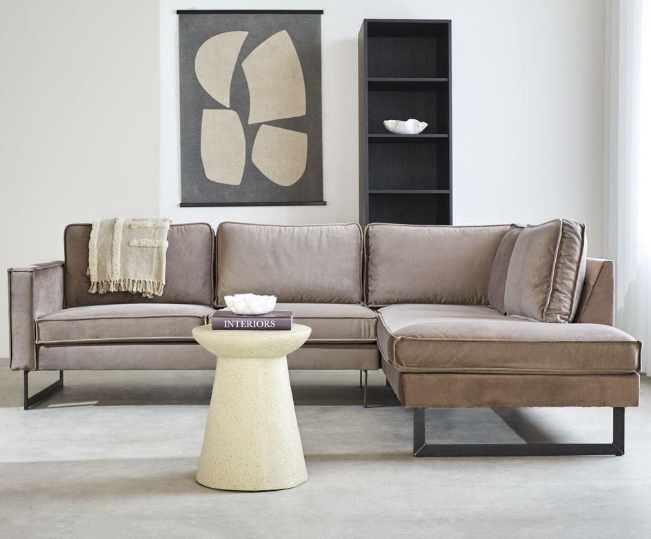 Hoekbank losse kussens champagne taupe velvet Quinn - rechts
