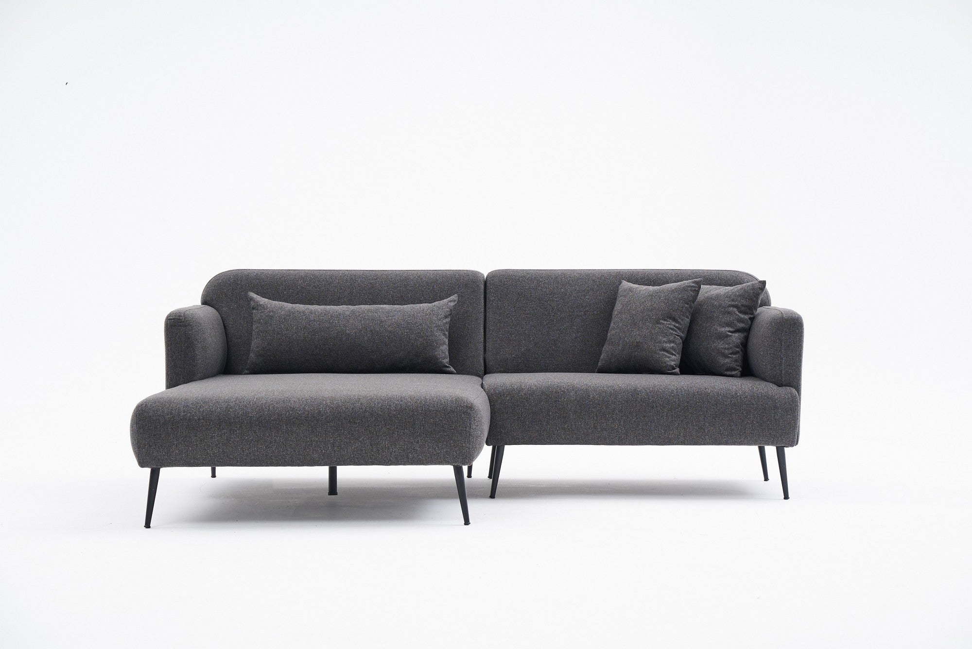 Het strakke ontwerp van deze hoekbank wordt aangevuld door de zwarte metalen poten en voegt een vleugje moderne flair toe aan elke kamer. De royale afmetingen van 250 cm x 86 cm x 100 cm bieden voldoende zitruimte voor jou en je geliefden. De bank kan ook gemakkelijk worden omgebouwd tot een ruim bed van 250 cm x 160 cm, waardoor hij ideaal is voor overnachtende gasten of lui loungen in het weekend.
