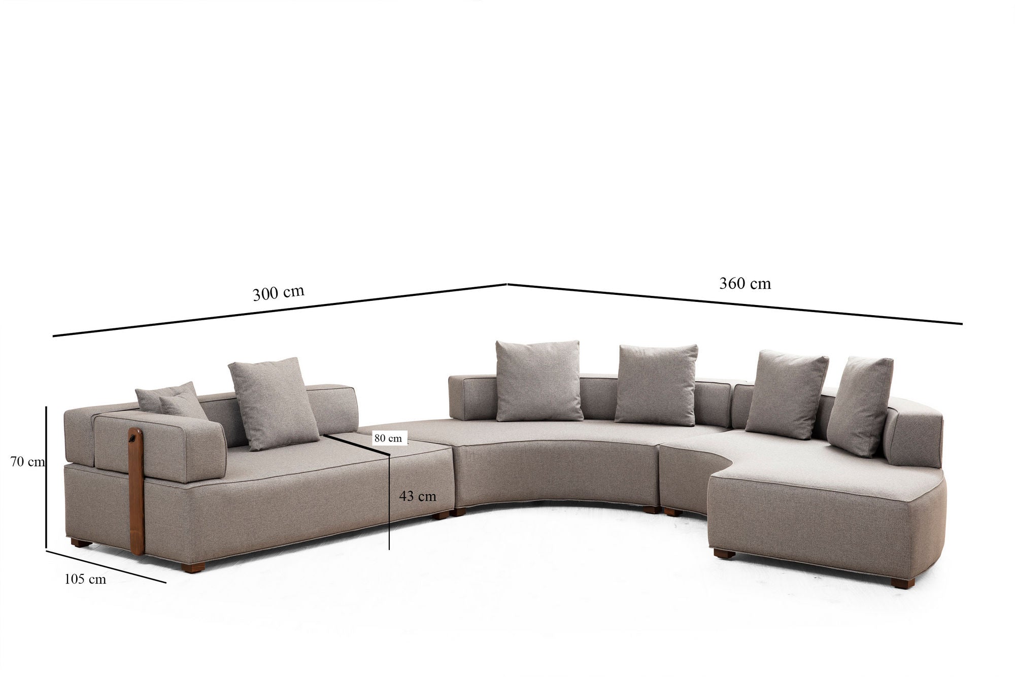 Met zijn royale afmetingen van 360 x 300 cm biedt onze hoekbank voldoende zitruimte voor jou en je gasten. De 7 bijgeleverde kussens, gemaakt van een mix van snipperschuim en siliconenschuim, voegen een extra laag comfort en stijl toe. De chemisch te reinigen stof zorgt voor eenvoudig onderhoud, zodat je bank er jarenlang fris en schoon uitziet.