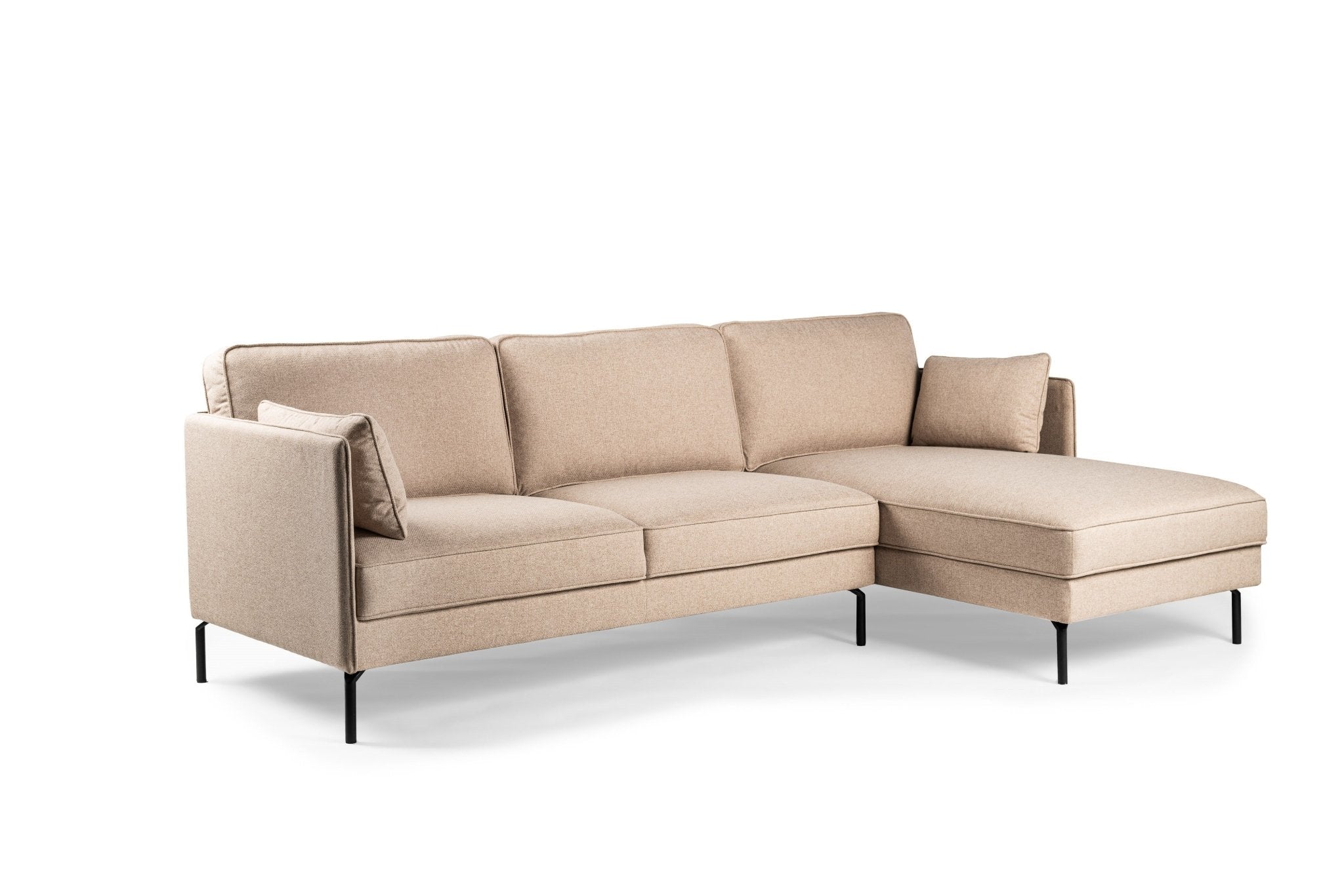 Beschrijving en specificaties van Hoekbank Sidney stof beige rechts