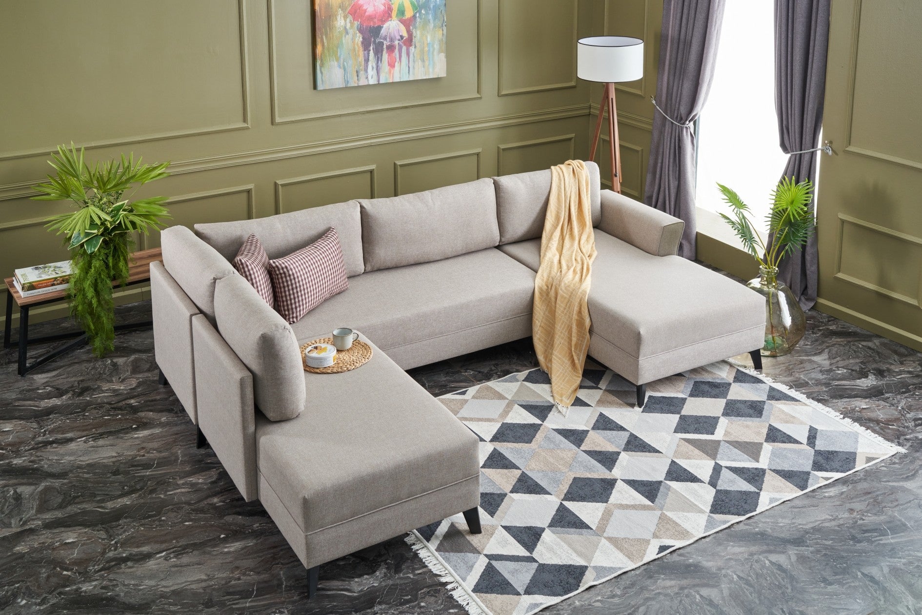 Met zijn effen crèmekleur past onze hoekslaapbank moeiteloos in elk interieur en voegt een vleugje verfijning en elegantie toe. Of je stijl nu modern, industrieel of scandinavisch is, deze slaapbank is de perfecte aanvulling voor je ruimte. Het strakke en nieuwe ontwerp zal zeker indruk maken op je gasten en een statement maken in je huis.