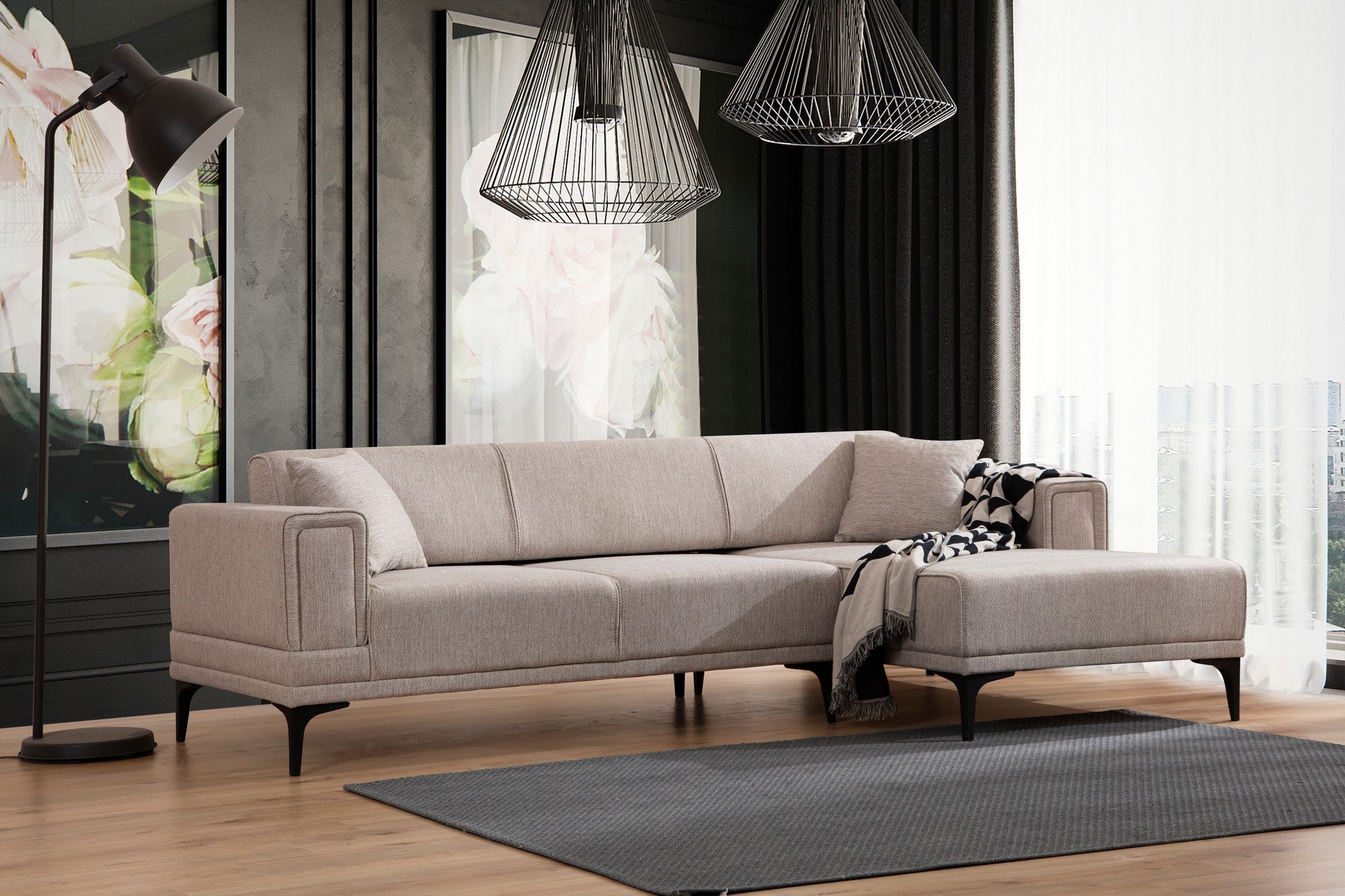 Hoekbank met slaapfunctie Rechts Horizon Licht Bruin