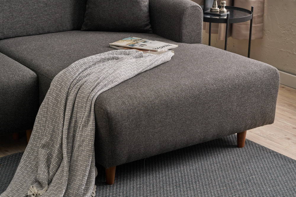 Transformeer je leefruimte met onze prachtige hoekslaapbank in antracietkleur. Dit veelzijdige meubelstuk is niet alleen een bank, maar ook een comfortabel bed waar je gasten op kunnen slapen.