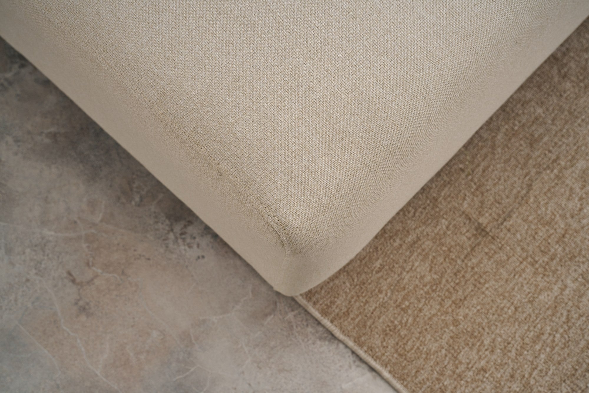 Het strakke ontwerp van deze hoekslaapbank is perfect voor elke moderne woonkamer. De crèmekleur voegt een vleugje elegantie toe, terwijl de beukenhouten poten zorgen voor een stevige en stijlvolle basis.