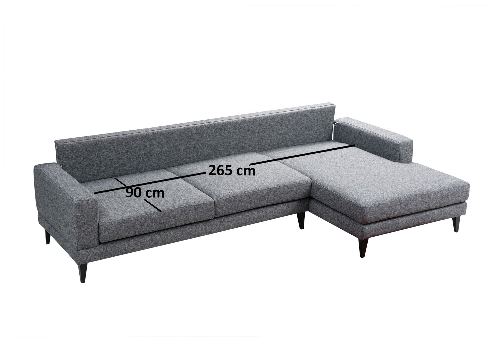 Met zijn strakke en moderne ontwerp past deze hoekslaapbank moeiteloos in elk interieur. De effen donkergrijze kleur voegt een vleugje verfijning toe, terwijl de zwarte hardplastic poten voor een eigentijds randje zorgen. Omarm de industriële en scandinavische esthetiek en creëer een stijlvolle en uitnodigende sfeer in je woonkamer.
