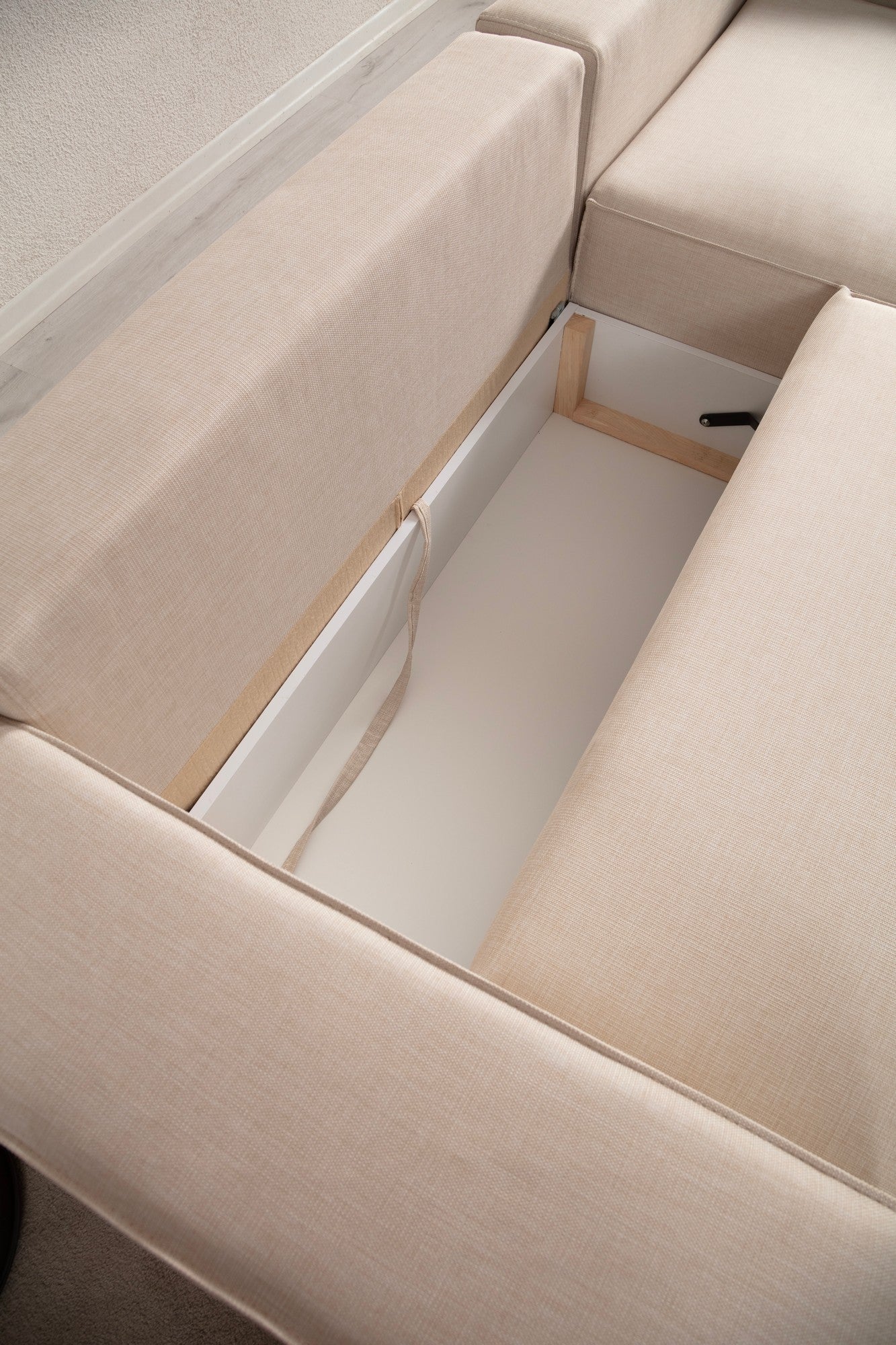 De ecru kleur van deze slaapbank voegt een vleugje elegantie en verfijning toe aan elke kamer. De kunststof zwarte poten zorgen niet alleen voor stabiliteit, maar vullen ook het algehele ontwerp aan.